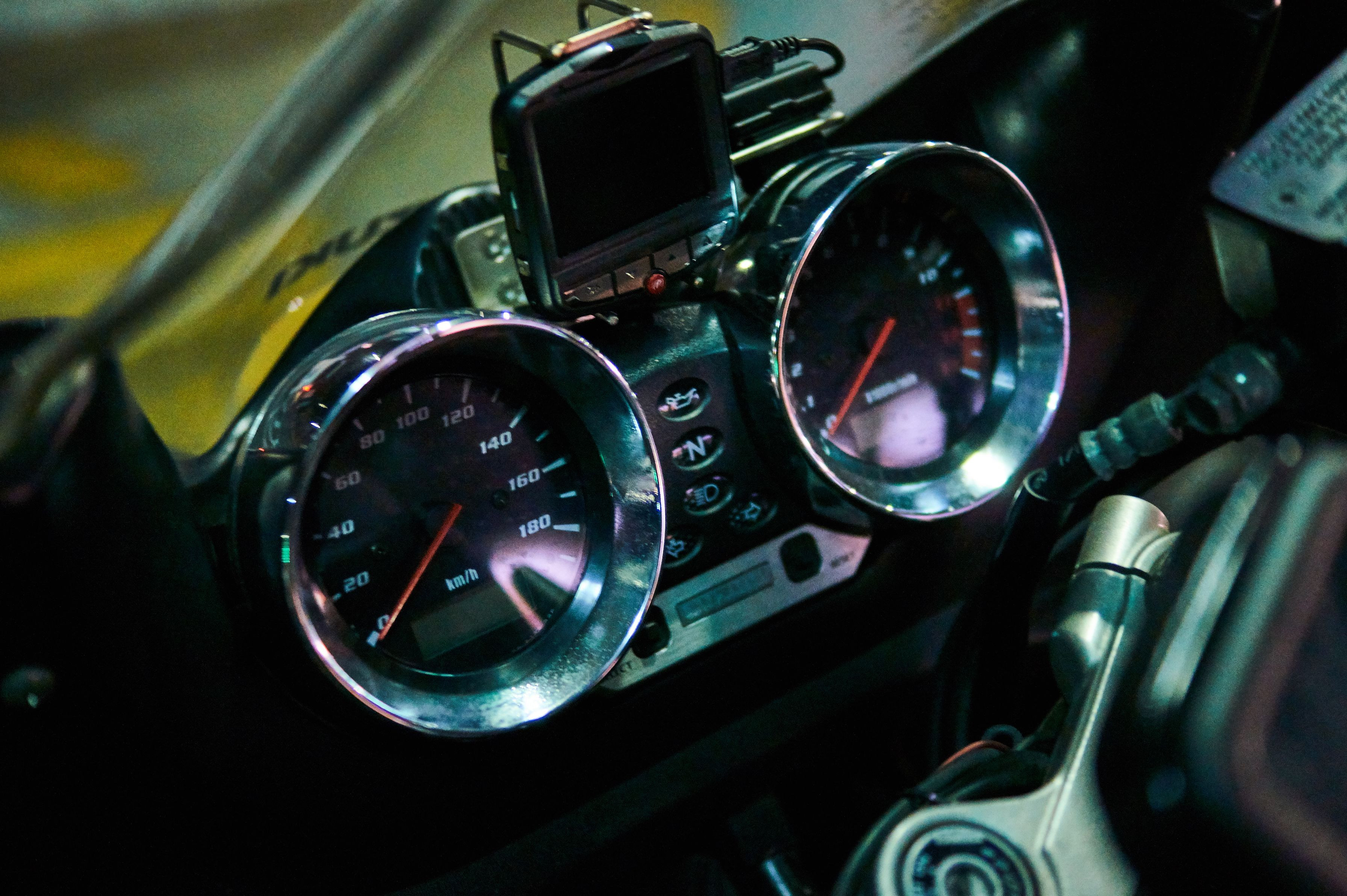 メーターやライトがいくつも並ぶ この光景は男なら憧れる(笑) さて、これはなんのメーターでしょう ヒント:国産・キャブ車