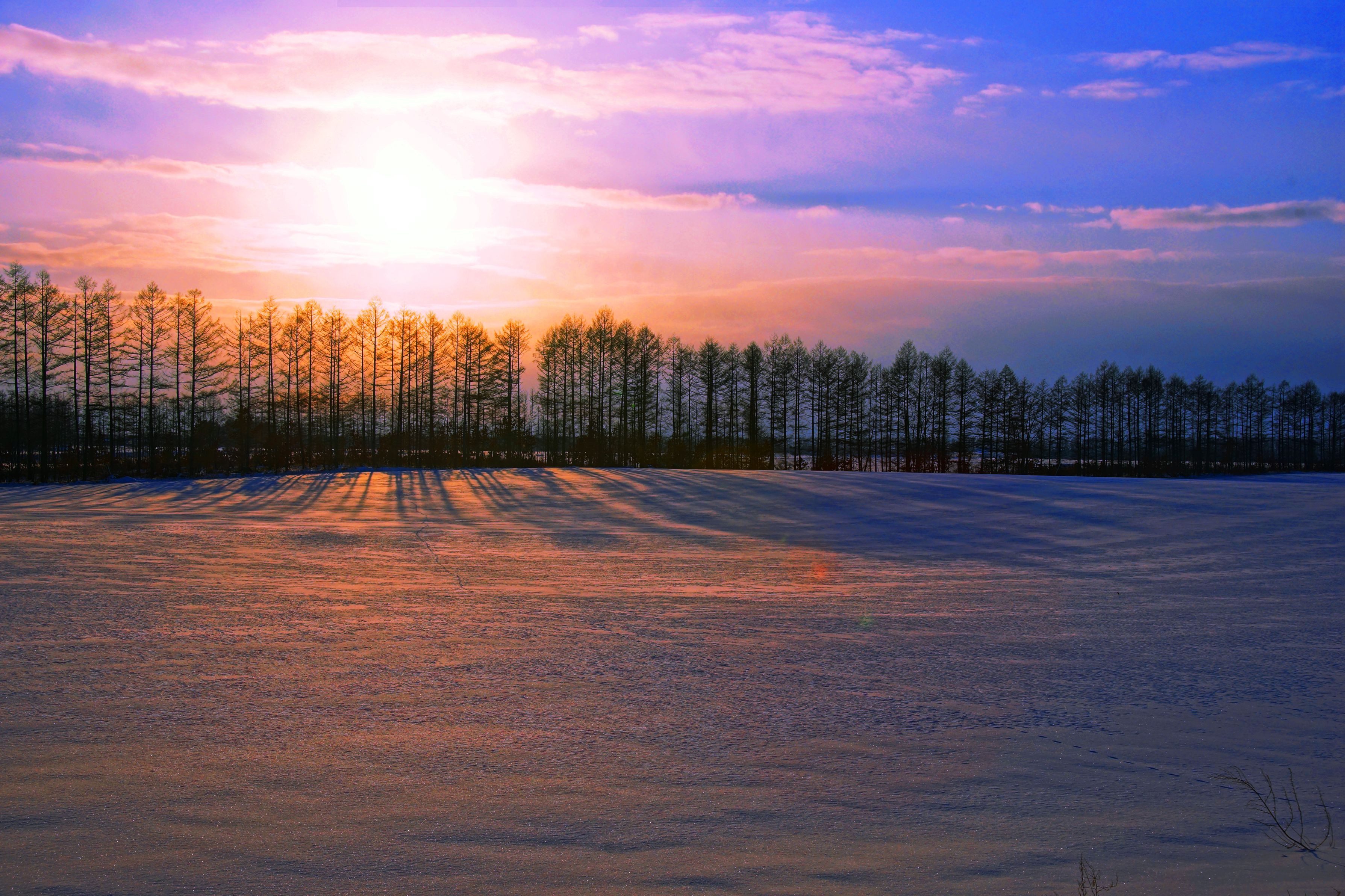 製品情報>My Sony>αcafe>十勝の風景1448 防風林と雪原の夕暮れ(ピクニックαさん)