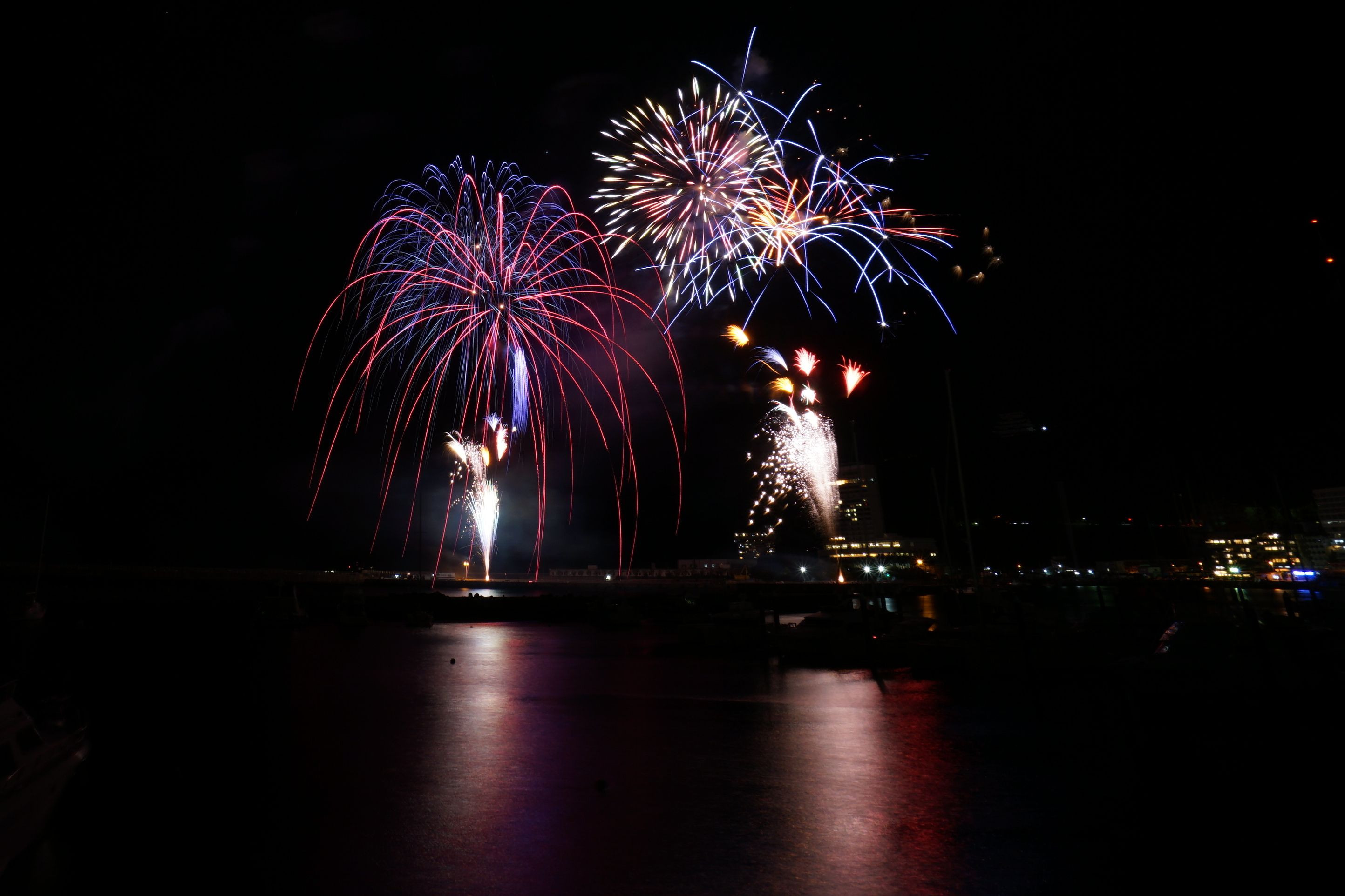 金武武先生の写真講座(1日完結)に初参加しました。 花火打ち上げの際にはレリーズの操作に追われ、ズームも動かさずじまい… ひたすら待ち続けた瞬間は夢のように過ぎましたが、とても幸せな時間でした。 金武先生、奥様、講師の先生、ご一緒した皆様ありがとうございました。 熱海海上花火大会 (トリミングしています)