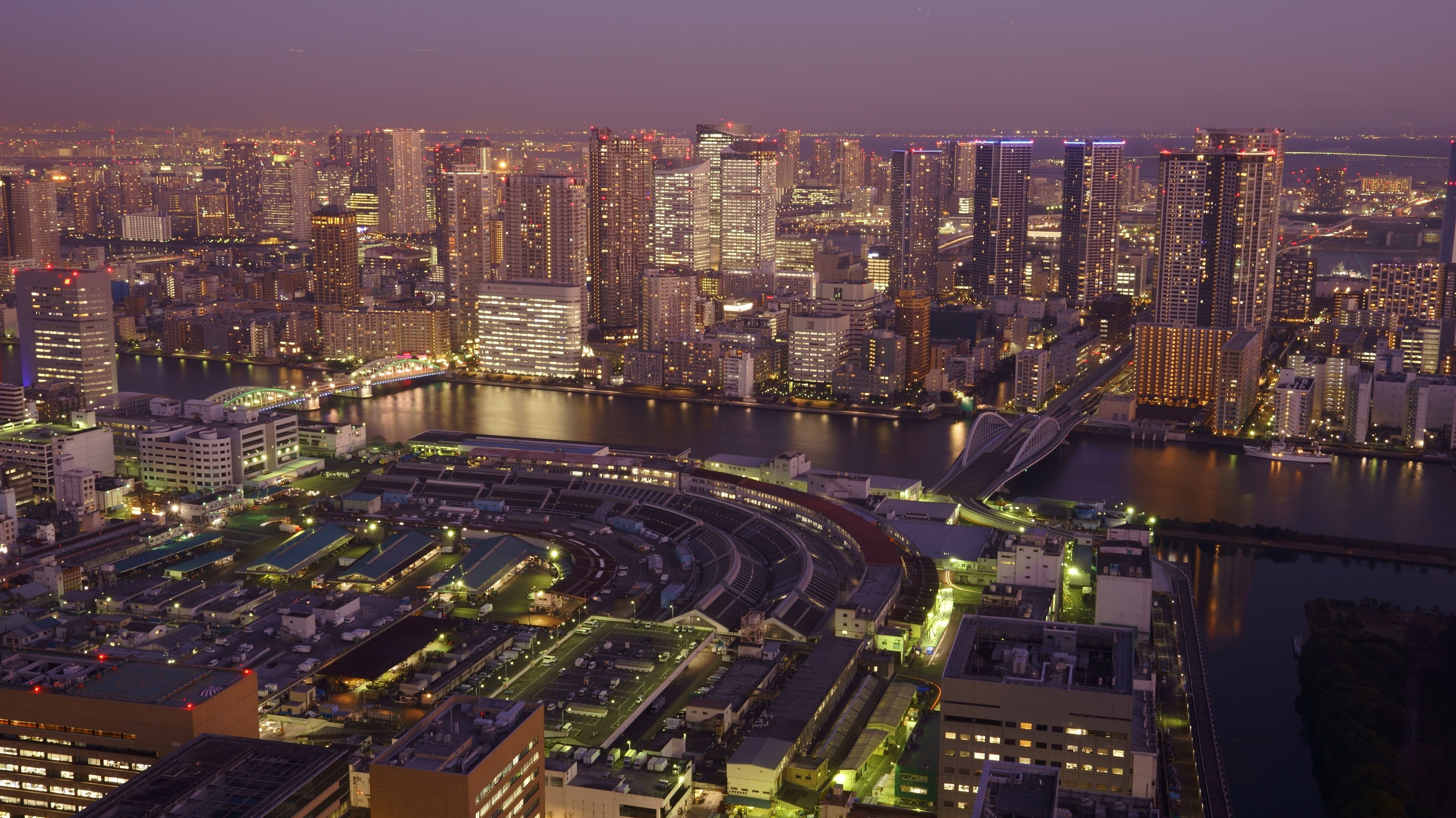 20数年前の夜 勝鬨橋から見る月島・勝どき方面は暗黒の大海の様でした。 それが今やコンクリートジャングルと化しダイヤモンドの如き煌きを放っています。 そして 80年以上に渡り東京の冷蔵庫を担ってきた年老いた市場は、その最後の冬を静かに過ごしています。