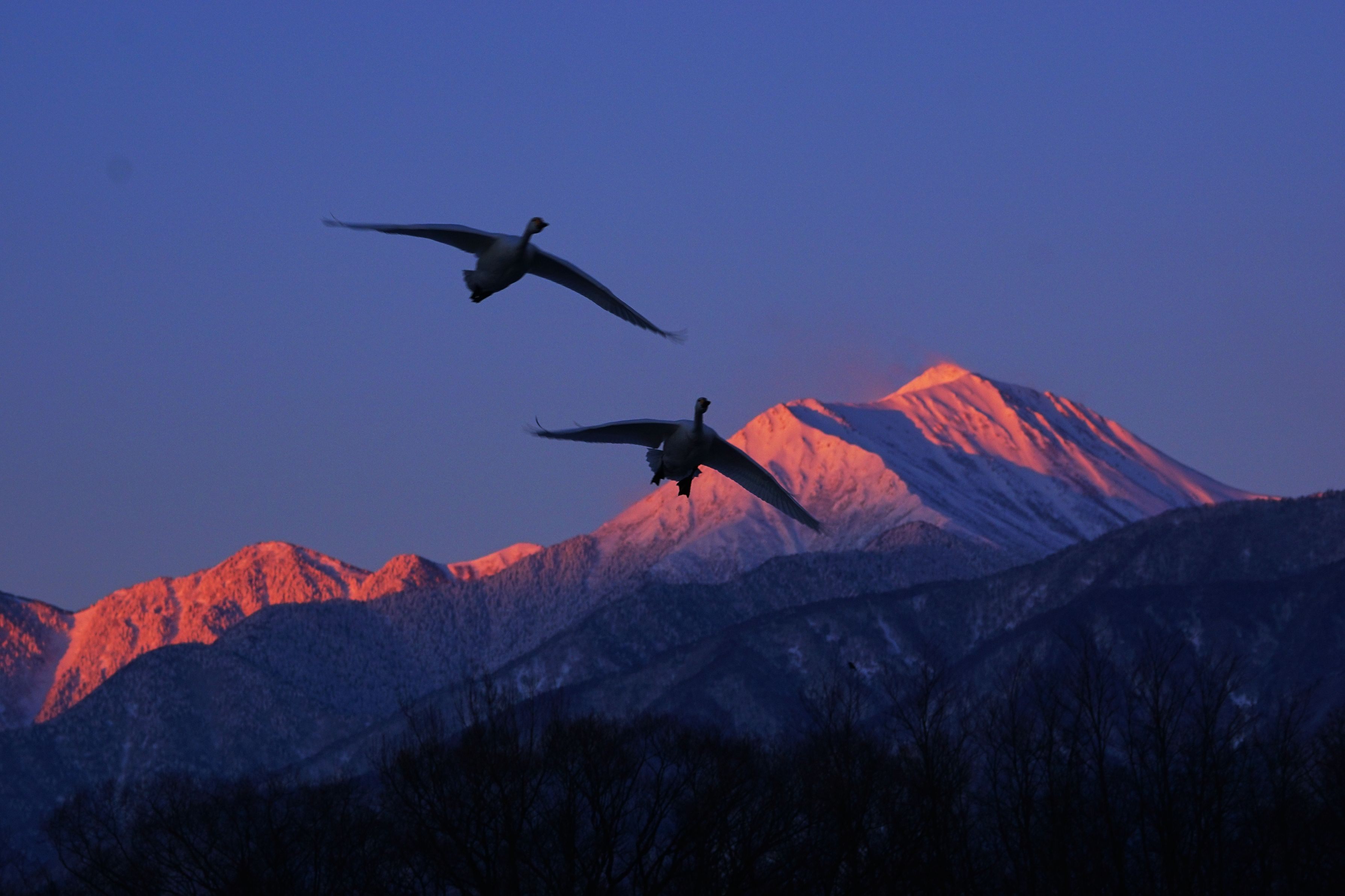 朝焼けに舞う
