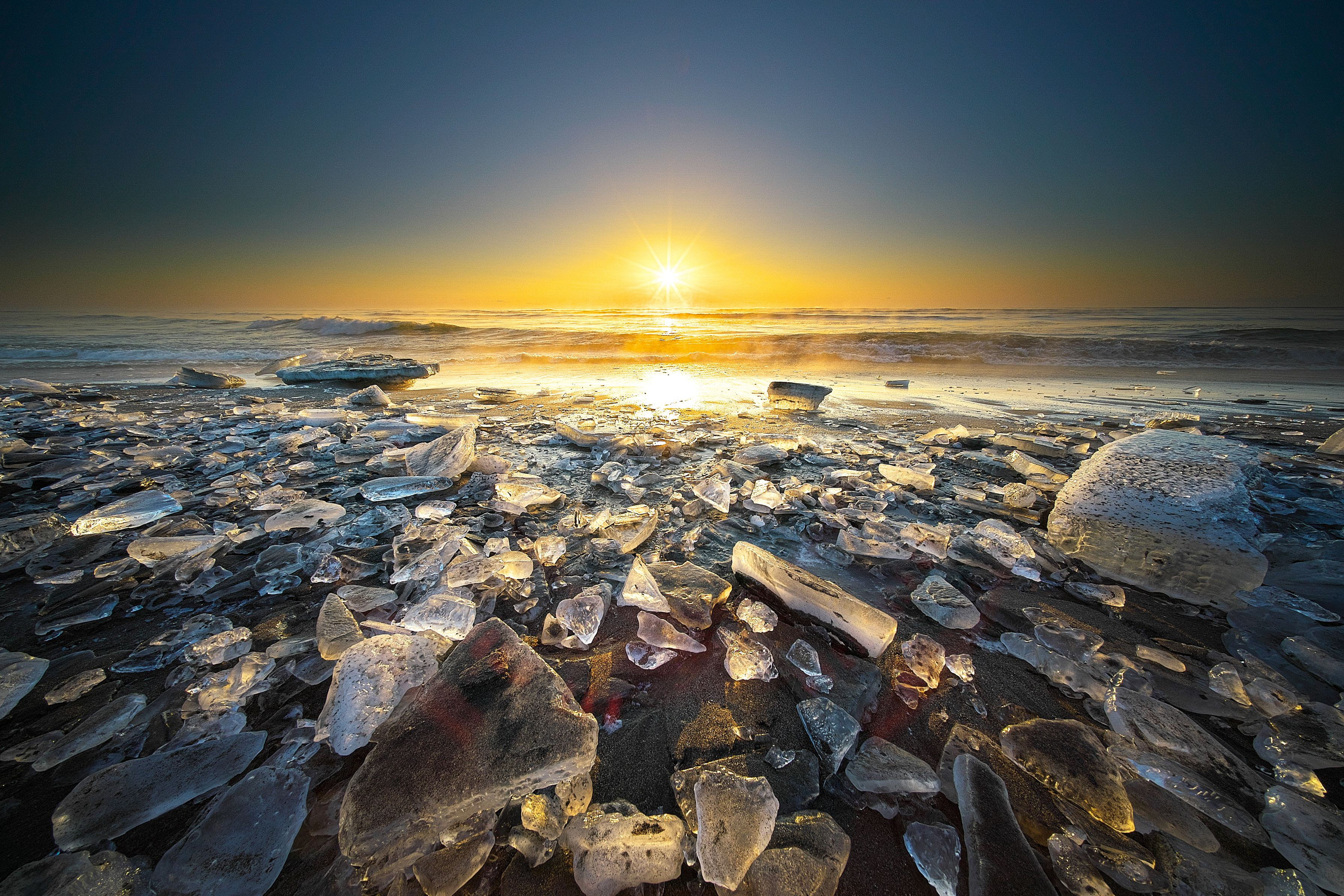 5年ほど前までは、まさに誰もいない荒涼とした河口に打ち上げられた氷塊と共に最果ての地に夜明けが訪れるみたいな感じだったのに、今やここはジュエリービーチ!! 今朝も500人以上は来てたんじゃないかな?これだけ人が多くなってくると、写真家気取りで文句をつけてくる輩が増えてくるのには閉口する。私も何度か「広角で撮ってるんだから前にいたら邪魔だぁ」、「足跡が付くから歩くなぁ」など文句を付けられたこと多数.