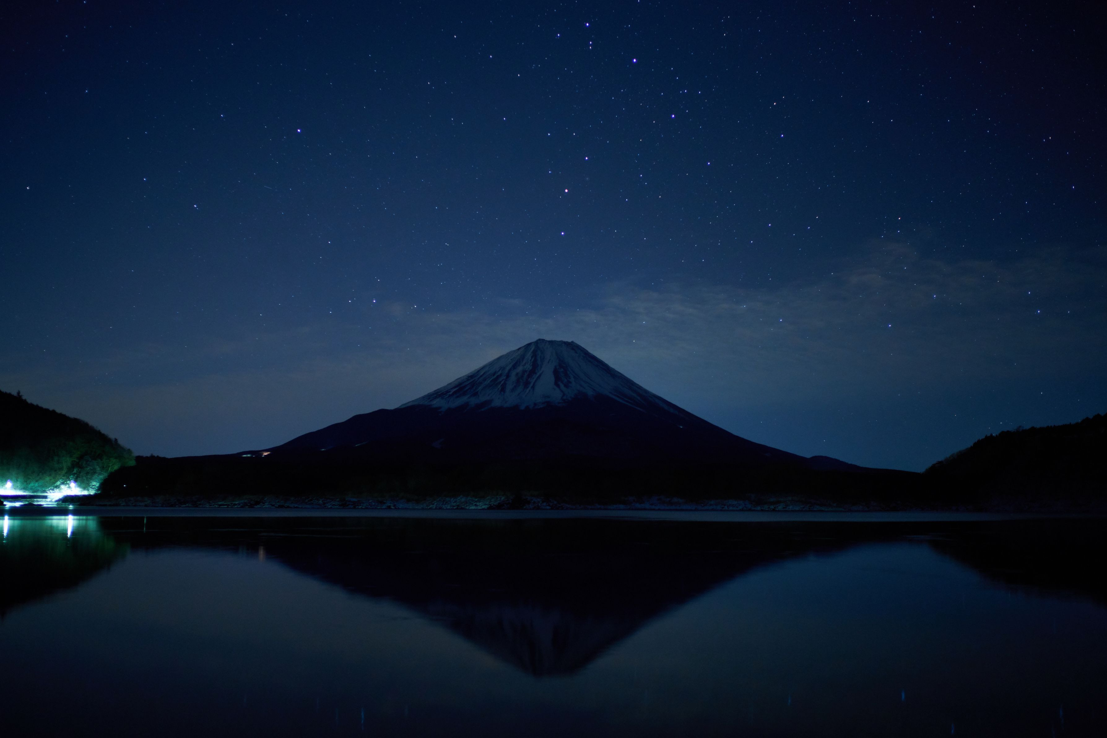 雪景色を撮りに精進湖に出かけた。翌朝はかなり冷え込むと聞き星空を期待し撮影した。暗いところでご覧ください。