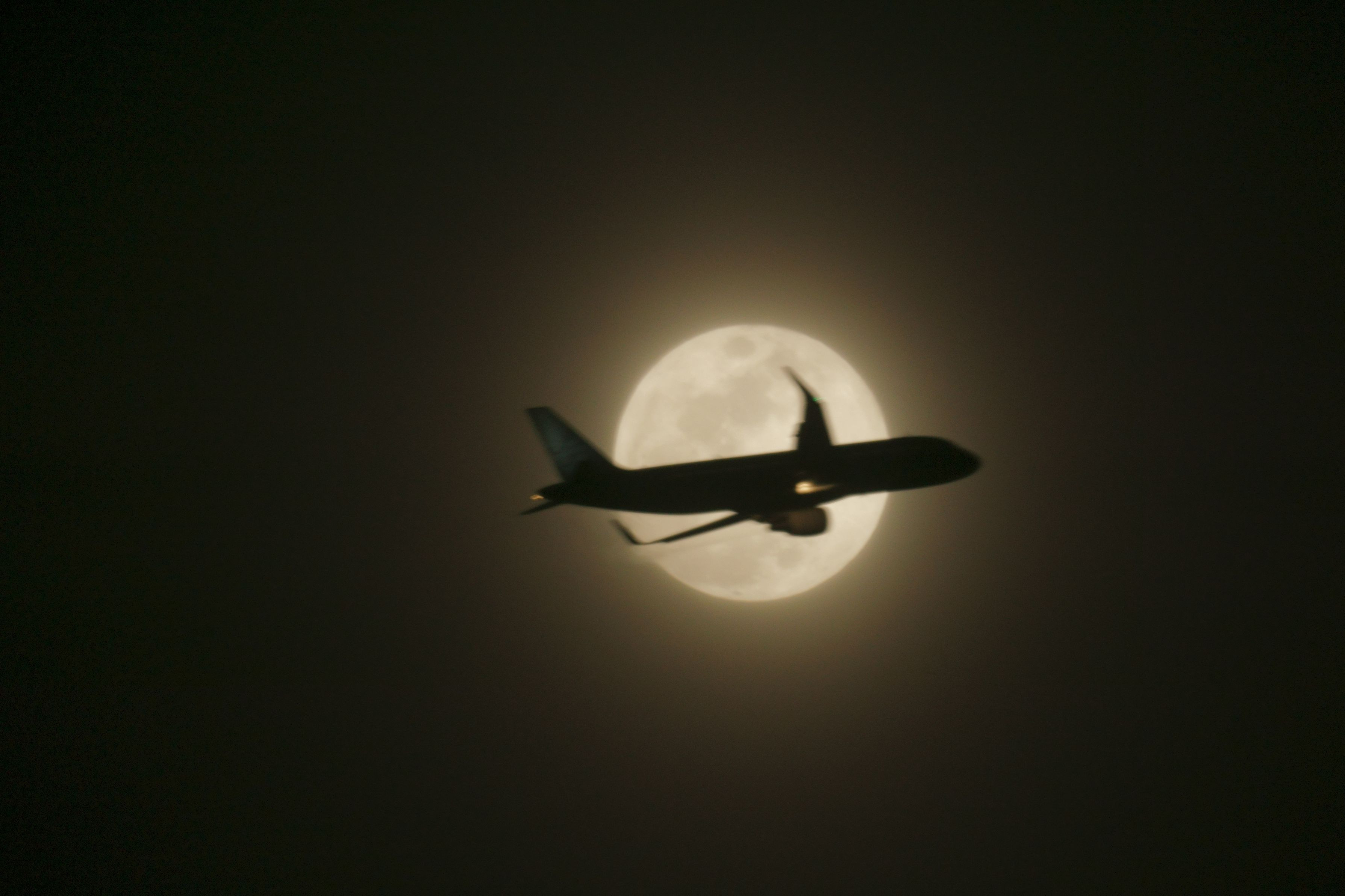 今日は満月なので、飛行機が月面通過してほしいと思い、カメラに新しく買ったレフレックスレンズをセットしました。 薄雲が出ていたので、月が鮮明に写っていませんが、ドンピシャの位置に飛行機が来てくれました。 エンジンと垂直尾翼の付け根の形から、エアバスA320だと分かりました。