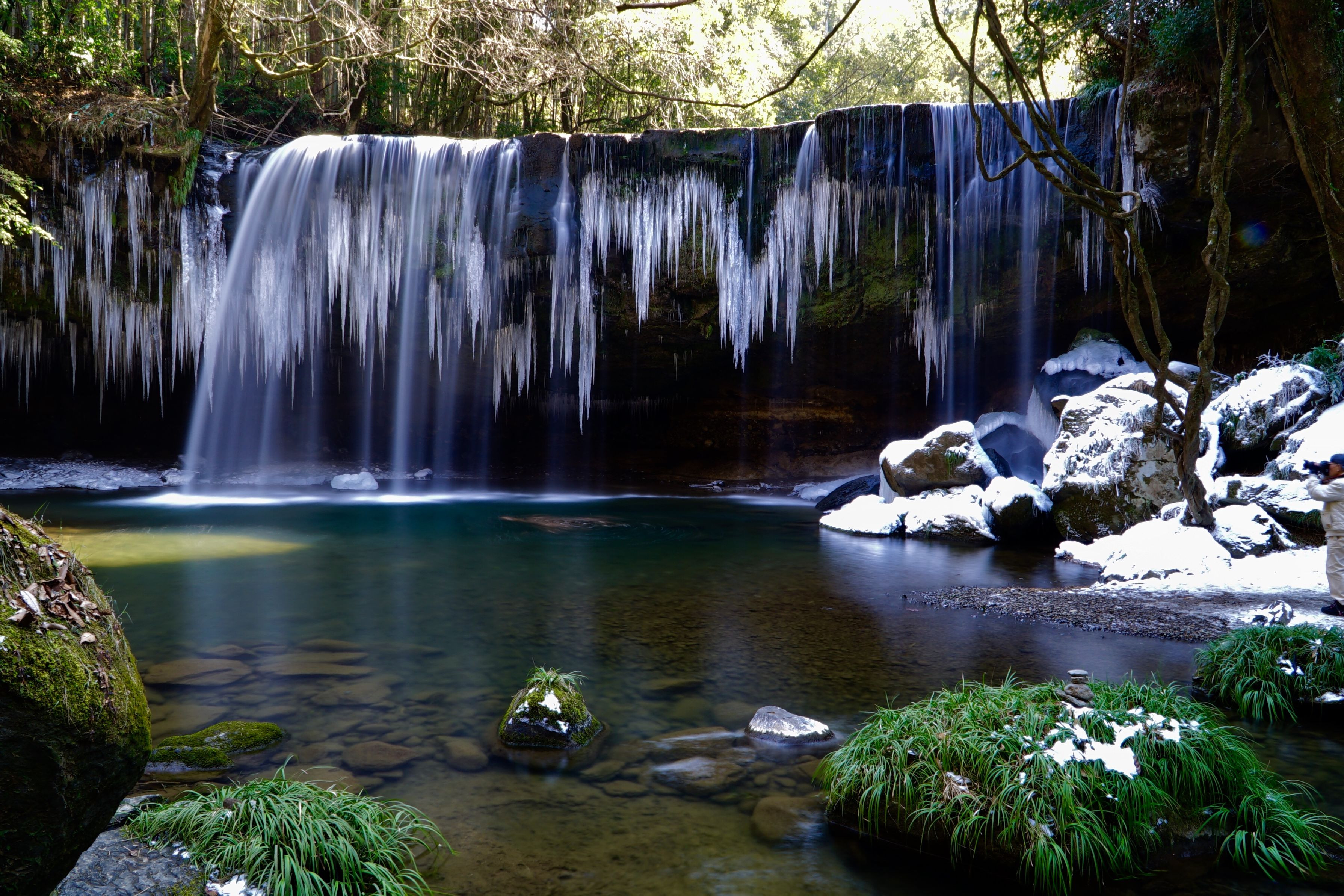 冬の鍋ヶ滝へ行ってきました。 日中は暖かく道路も凍結はしてないだろうと思い車を走らせ 滝には雪や氷は無くなってるかなって思ってましたが 着いて滝を見ると思わず声を上げる程素晴らしい自然の芸術が 夢中になってシャッター押してました。