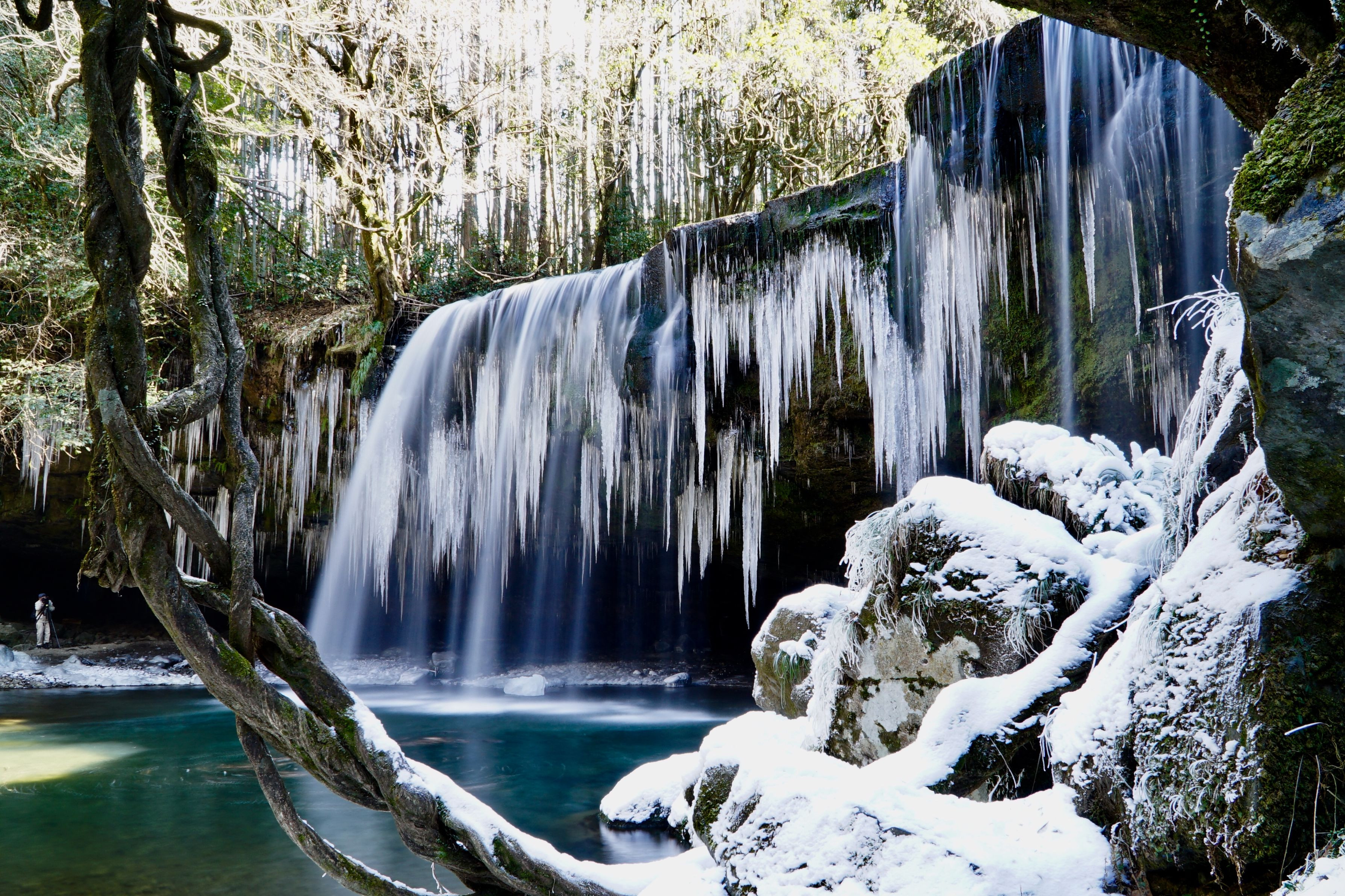 冬の鍋ヶ滝へ行ってきました。 日中は暖かく道路も凍結はしてないだろうと思い車を走らせ 滝には雪や氷は無くなってるかなって思ってましたが 着いて滝を見ると思わず声を上げる程素晴らしい自然の芸術が 夢中になってシャッター押してました。