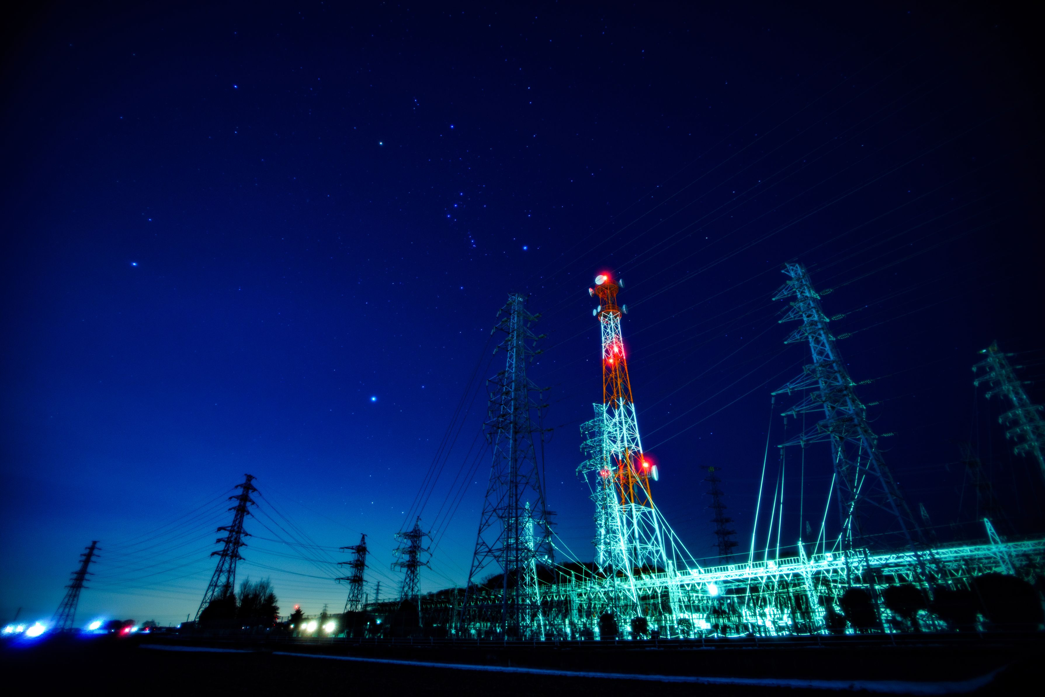 変電所上空に浮かぶオリオン。 鉄塔群と組み合わせたら面白いんじゃないかと思いました。
