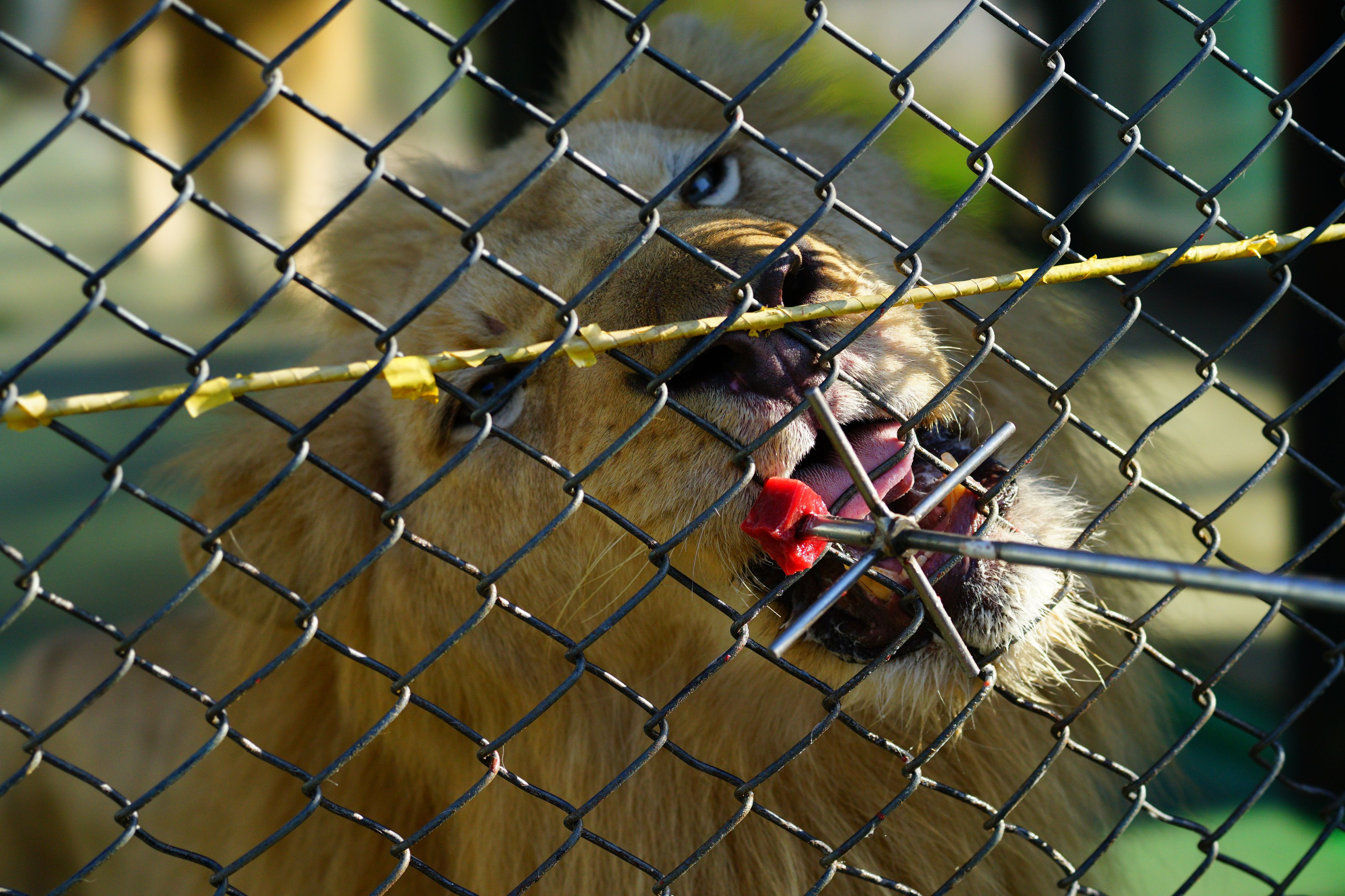 にくをたべるらいおんです。