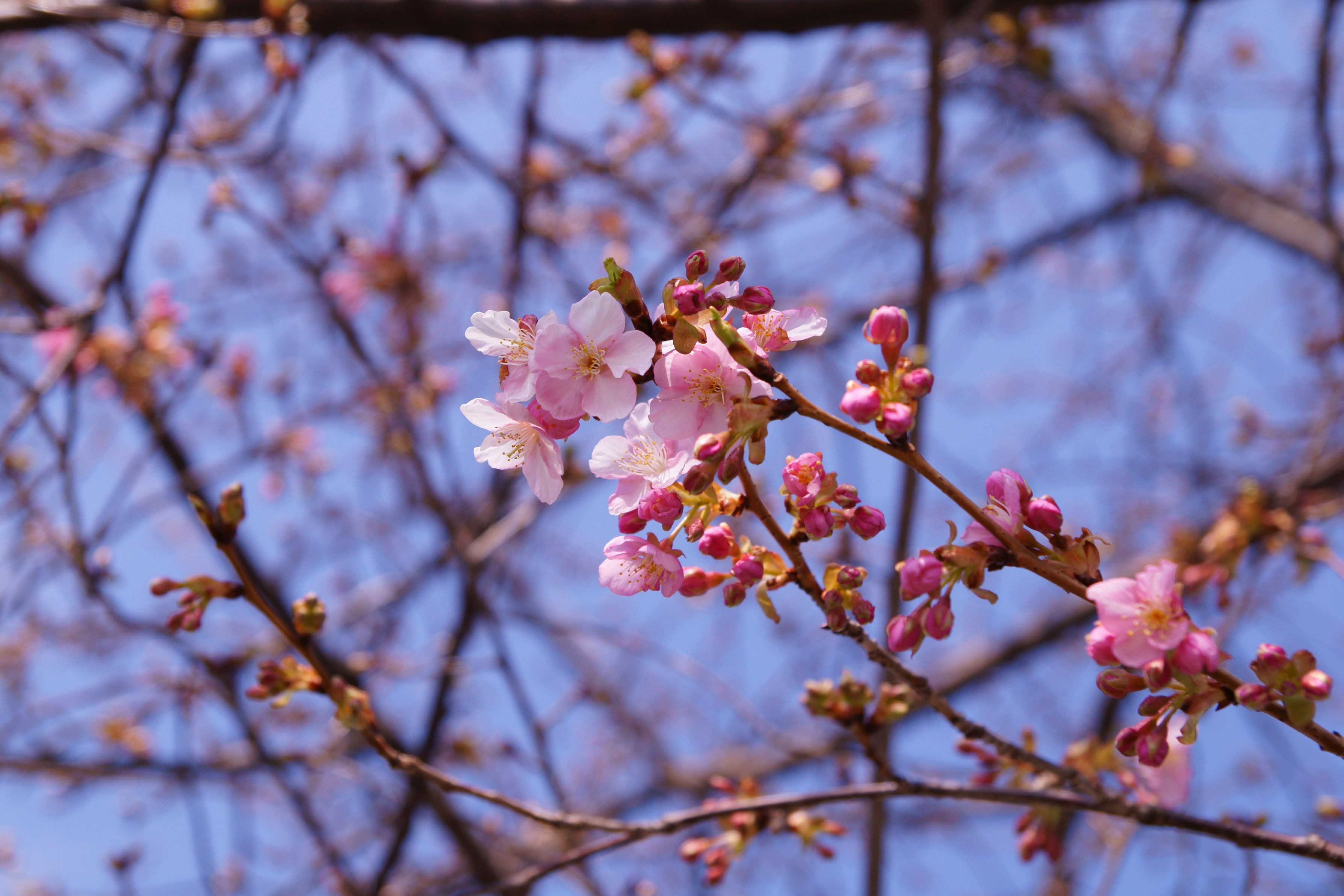 近所の河津桜が咲きました。 今年は寒いから、まだかなと思いましたが咲いてました。