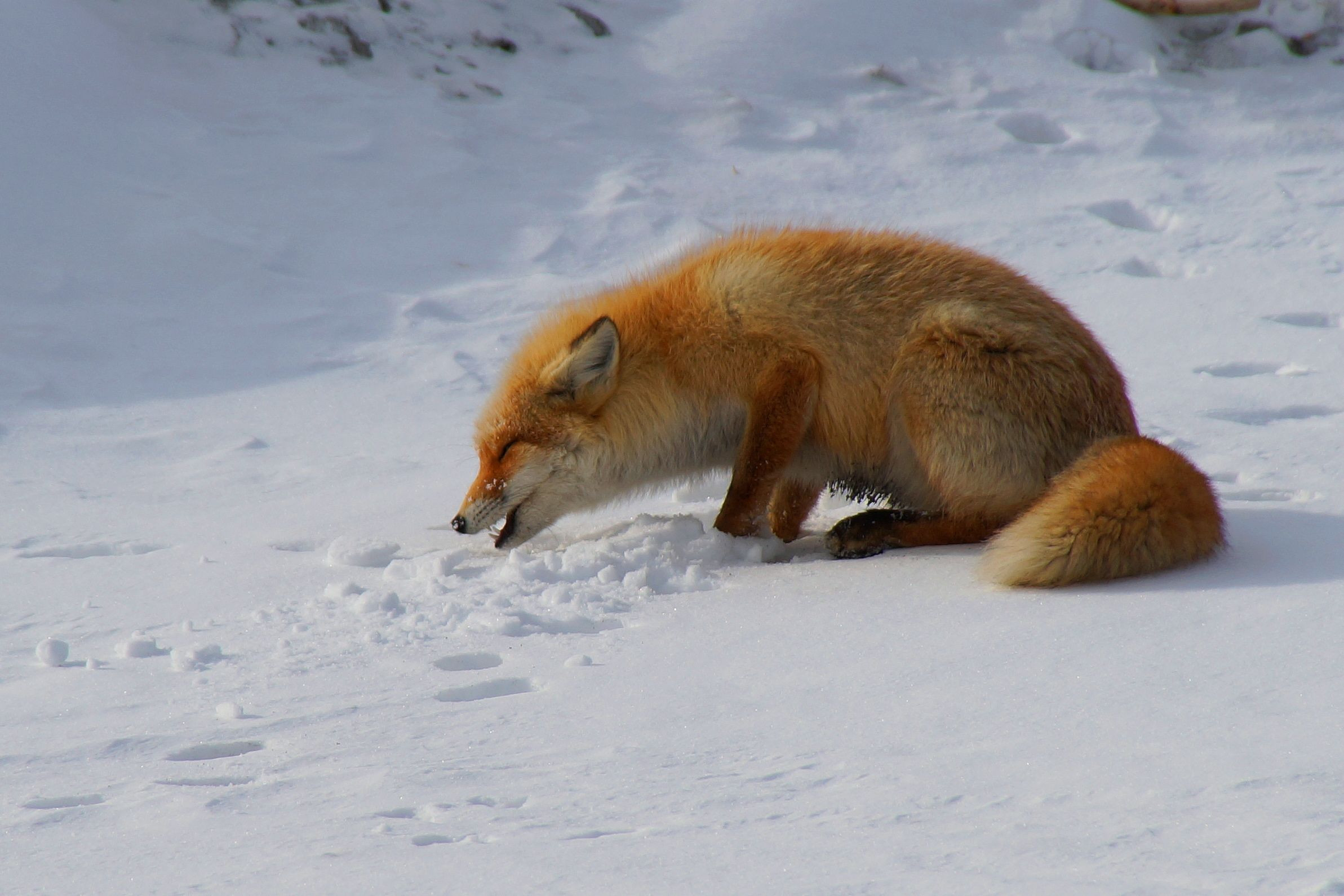 製品情報>My Sony>αcafe>十勝の風景1492 何かを飲み込んだキツネ(ピクニックαさん)