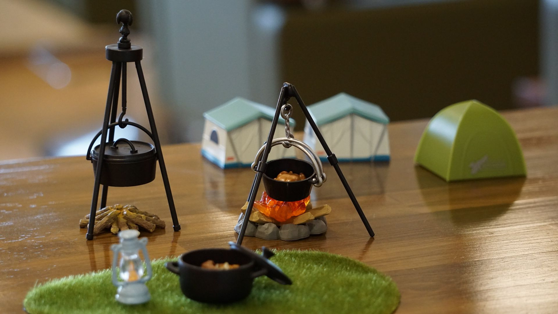 ガチャガチャですが、キャンプをイメージして撮影しました。メインは焚き火とダッチオーブンです。