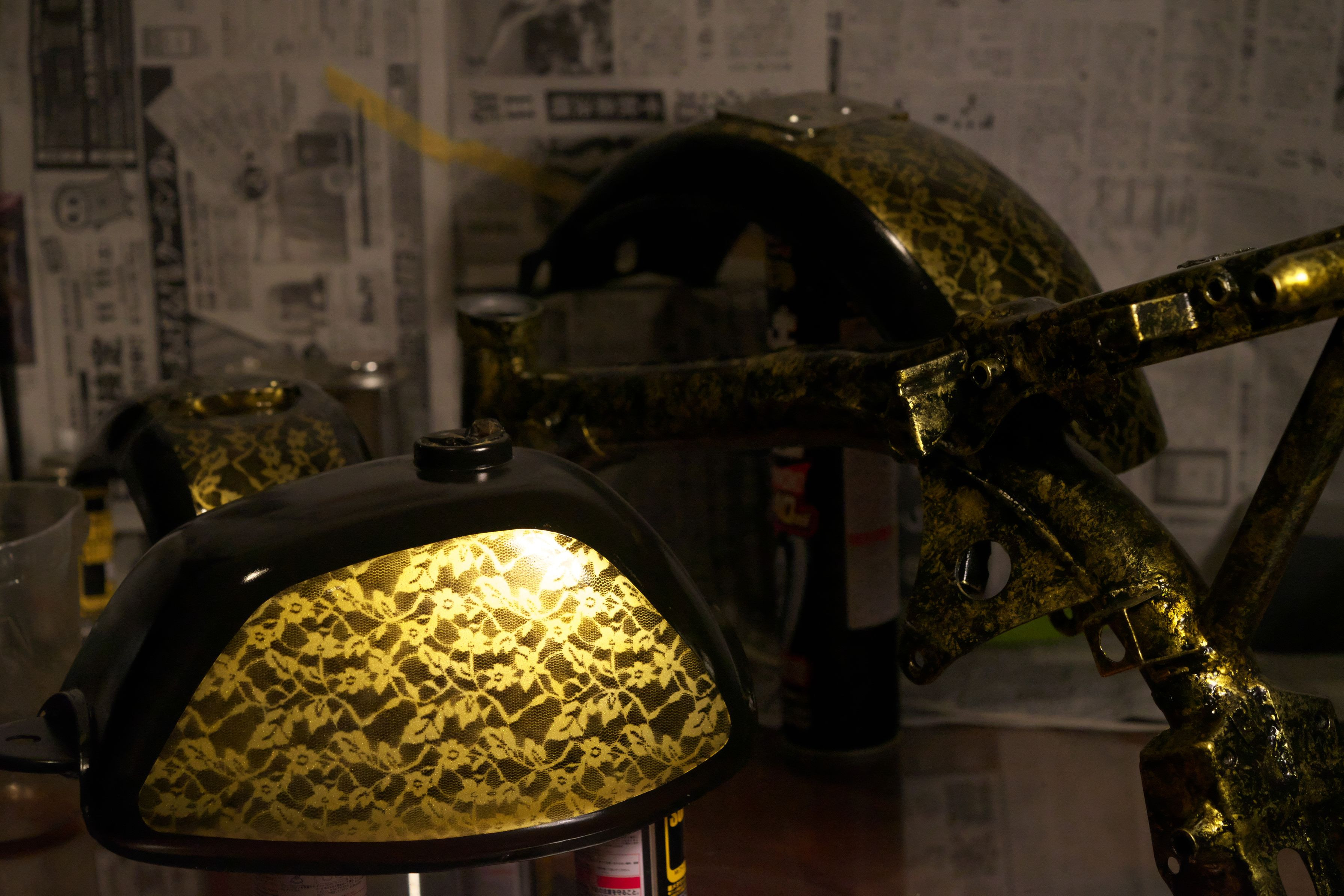 4Lモンキーのタンクですがこんな感じで造ってみてます。 ちょっと派手ですが どうしようもないです。