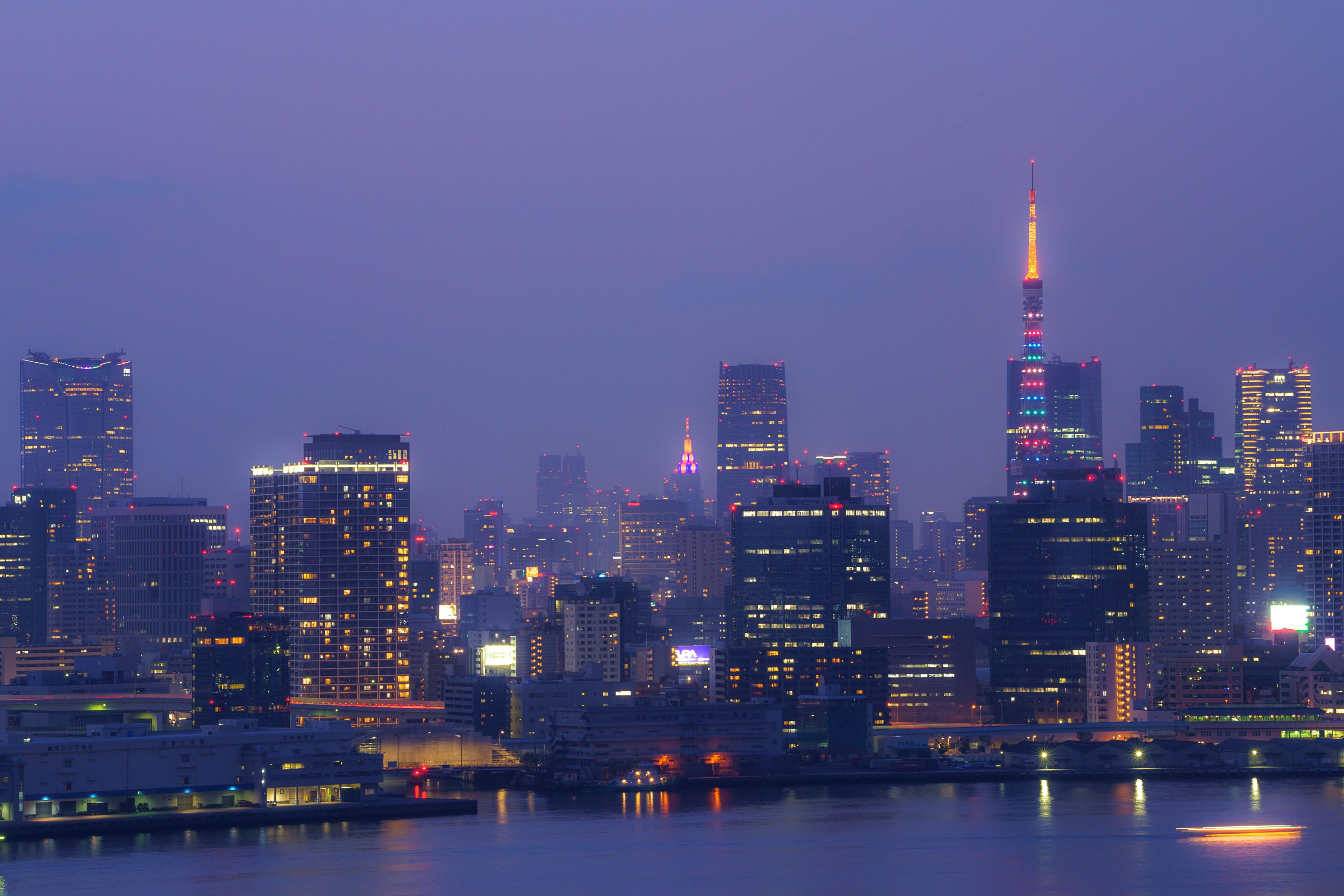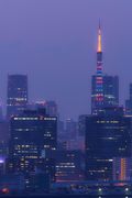 日没から夜に変わる景色でカラフルなタワーが目立ってました。 今まで見た中で一番カラフルかな? 明瞭度落として仕上げてみました。