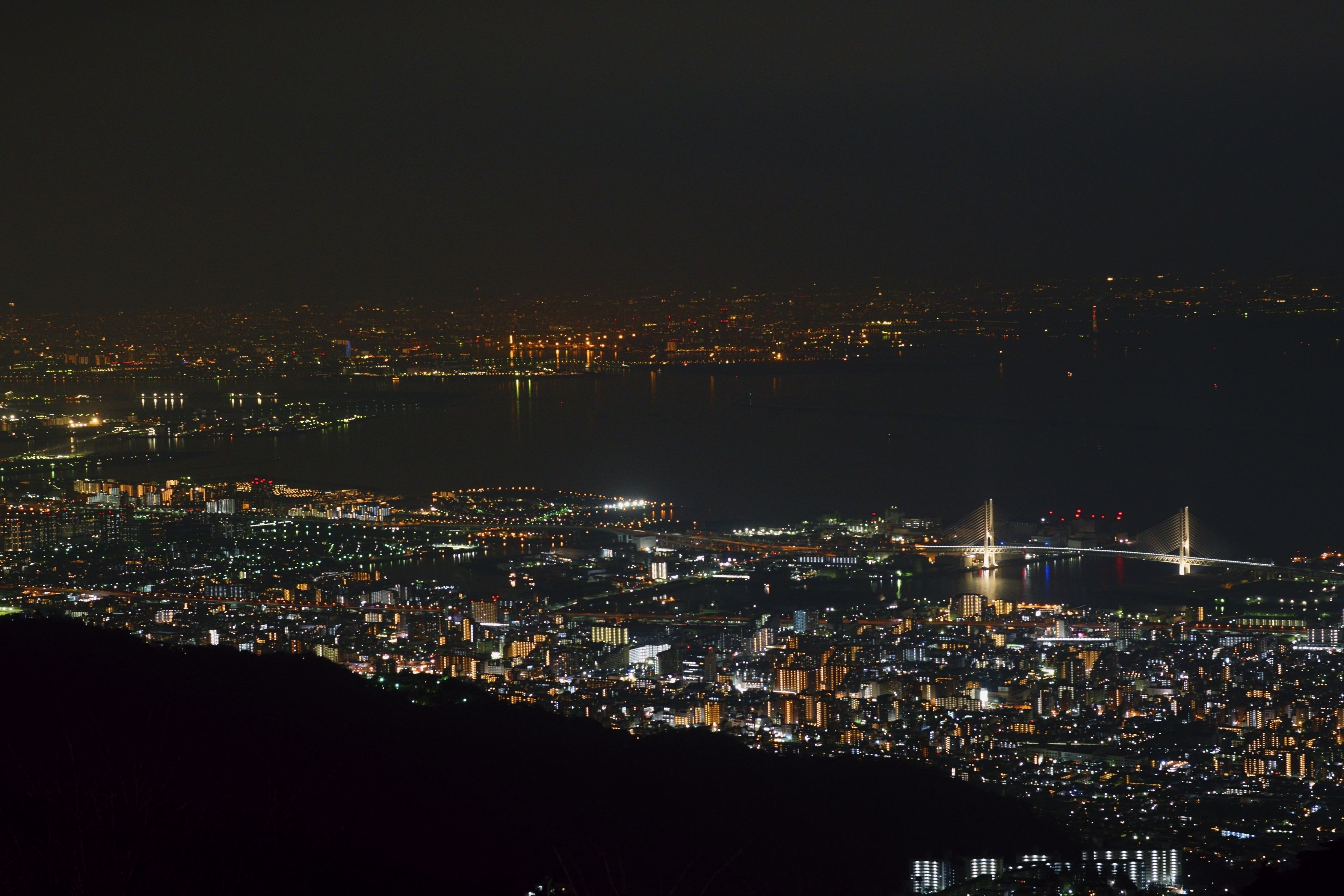 六甲山から見た大阪方面の夜景です.冬の季節は空気が澄んでるので遠くても光が少し届いてきます.