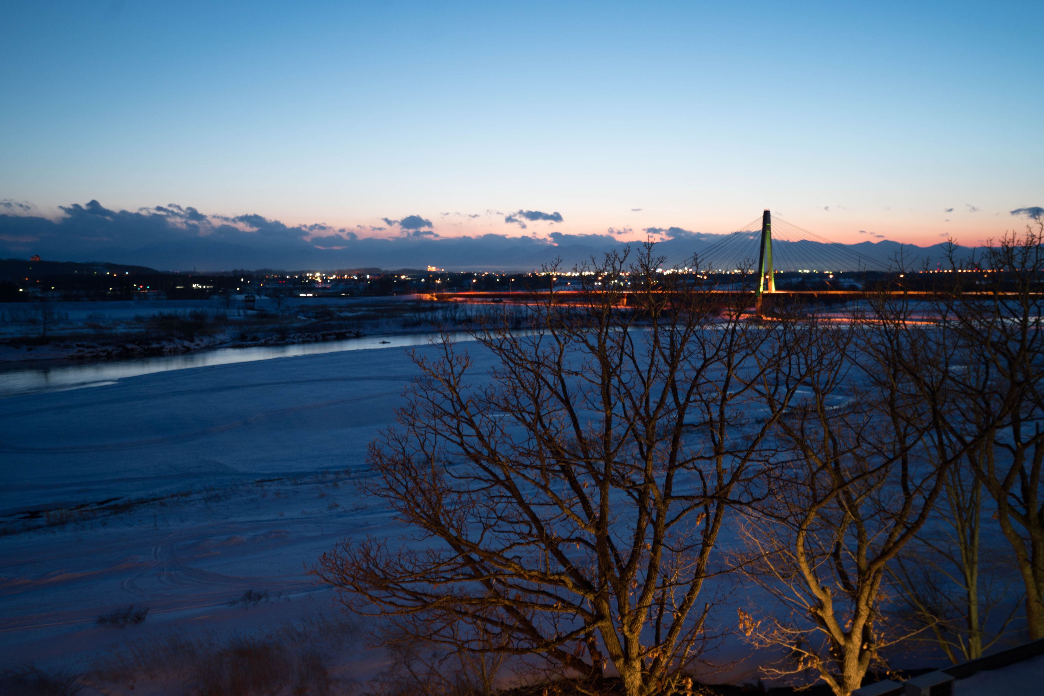 寒い十勝川の夕やけです。