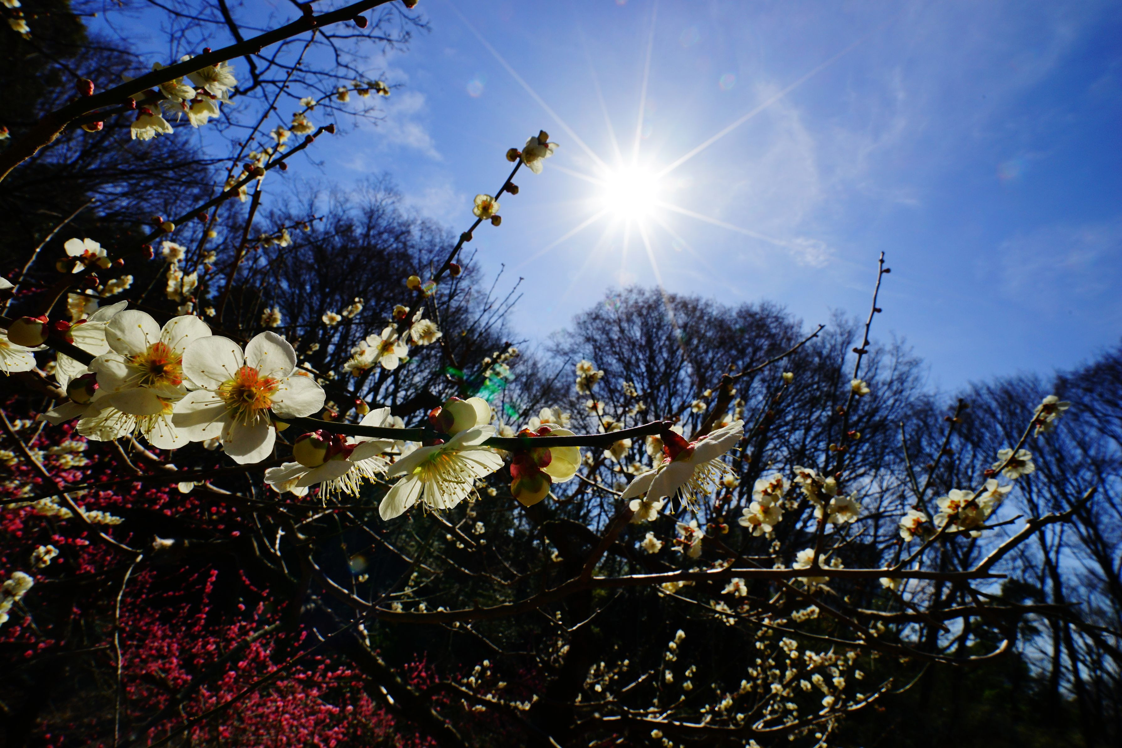 関東も梅が見ごろになってきました。晴天の空の下、綺麗に咲いています。