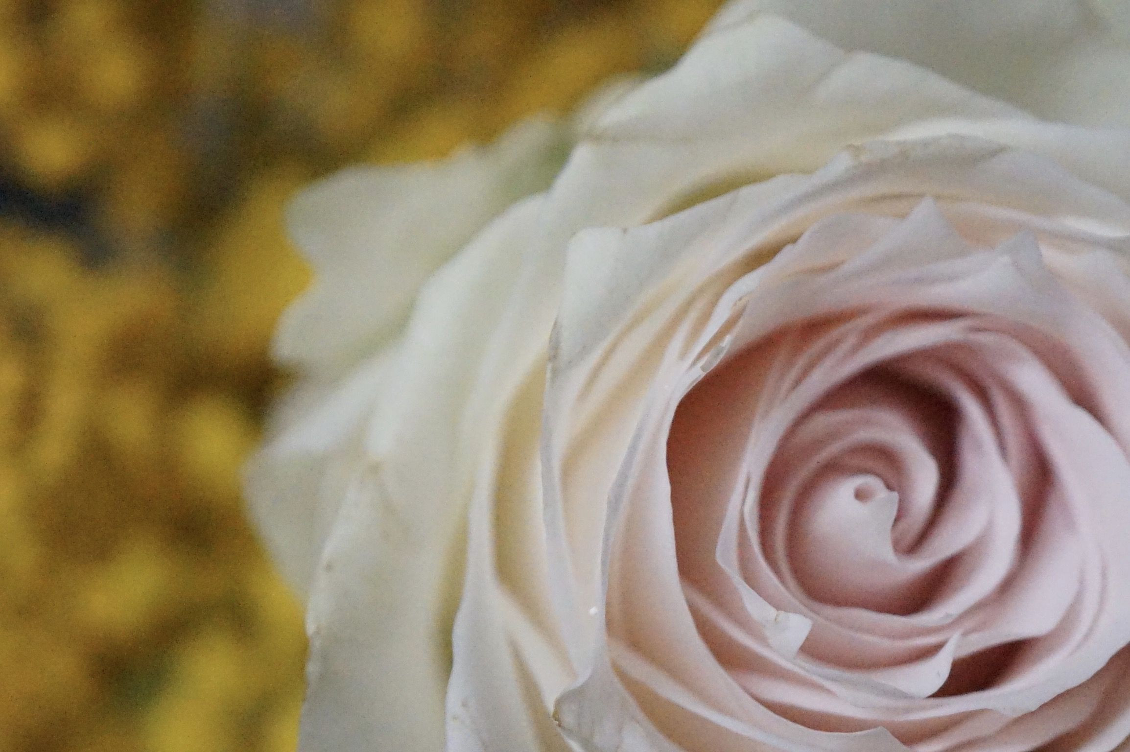 3月8日はミモザの日です(^ ^)。がミモザのアップを見ていると花粉の群れにも見えてくるので…アップはバラにしました。