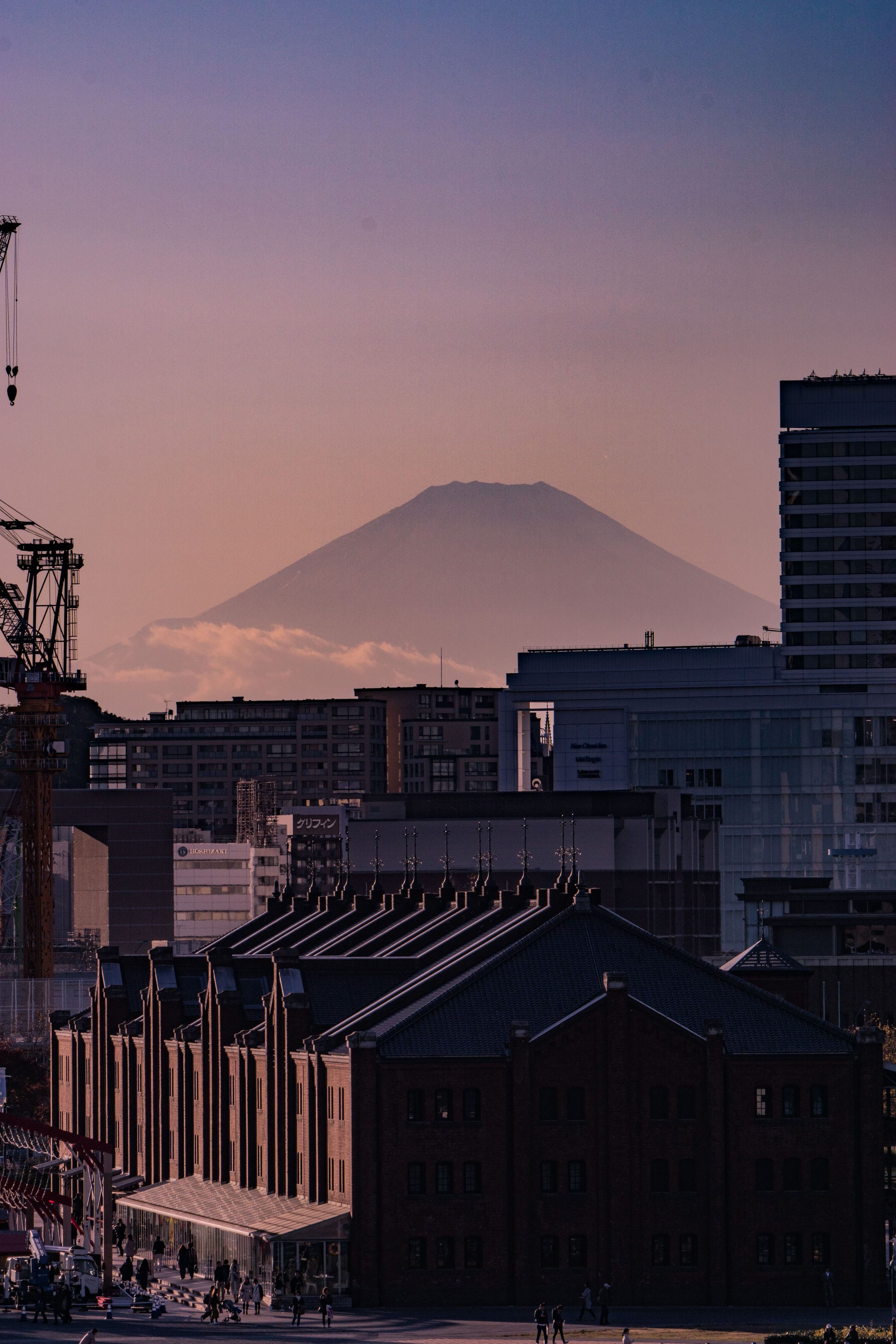 大さん橋から赤レンガと夕暮れの富士を合わせてみました。