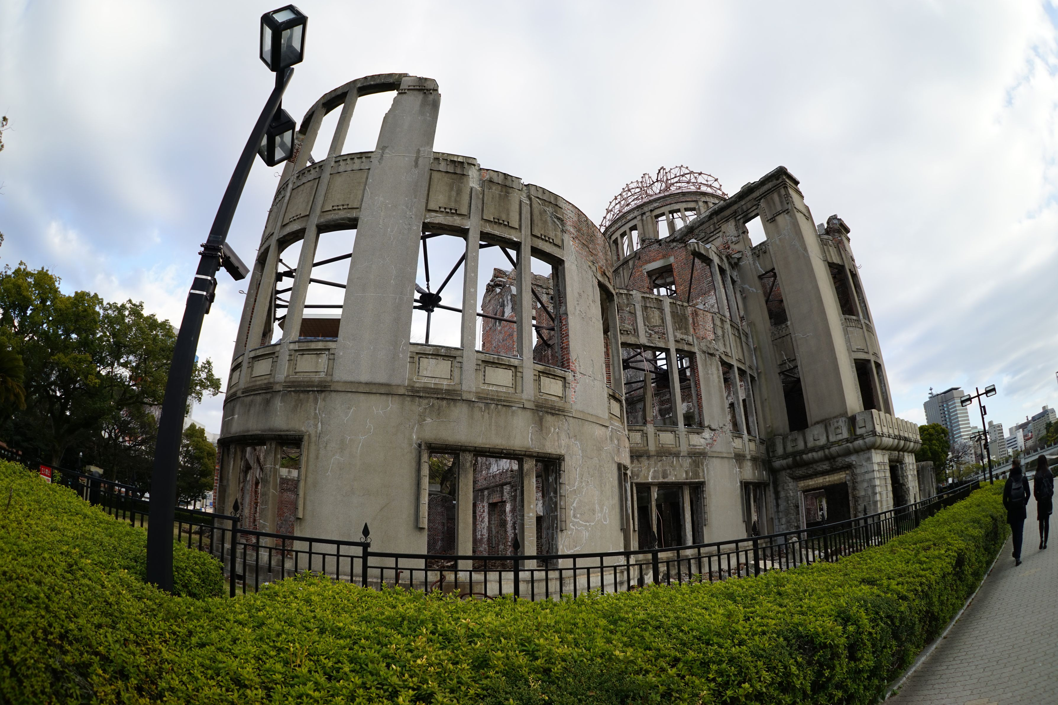 魚眼レンズで撮影した原爆ドームです。樽型になりました。
