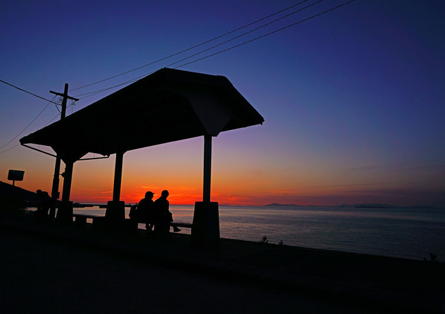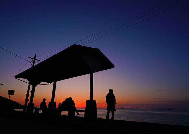 日没後、残照の下灘駅。