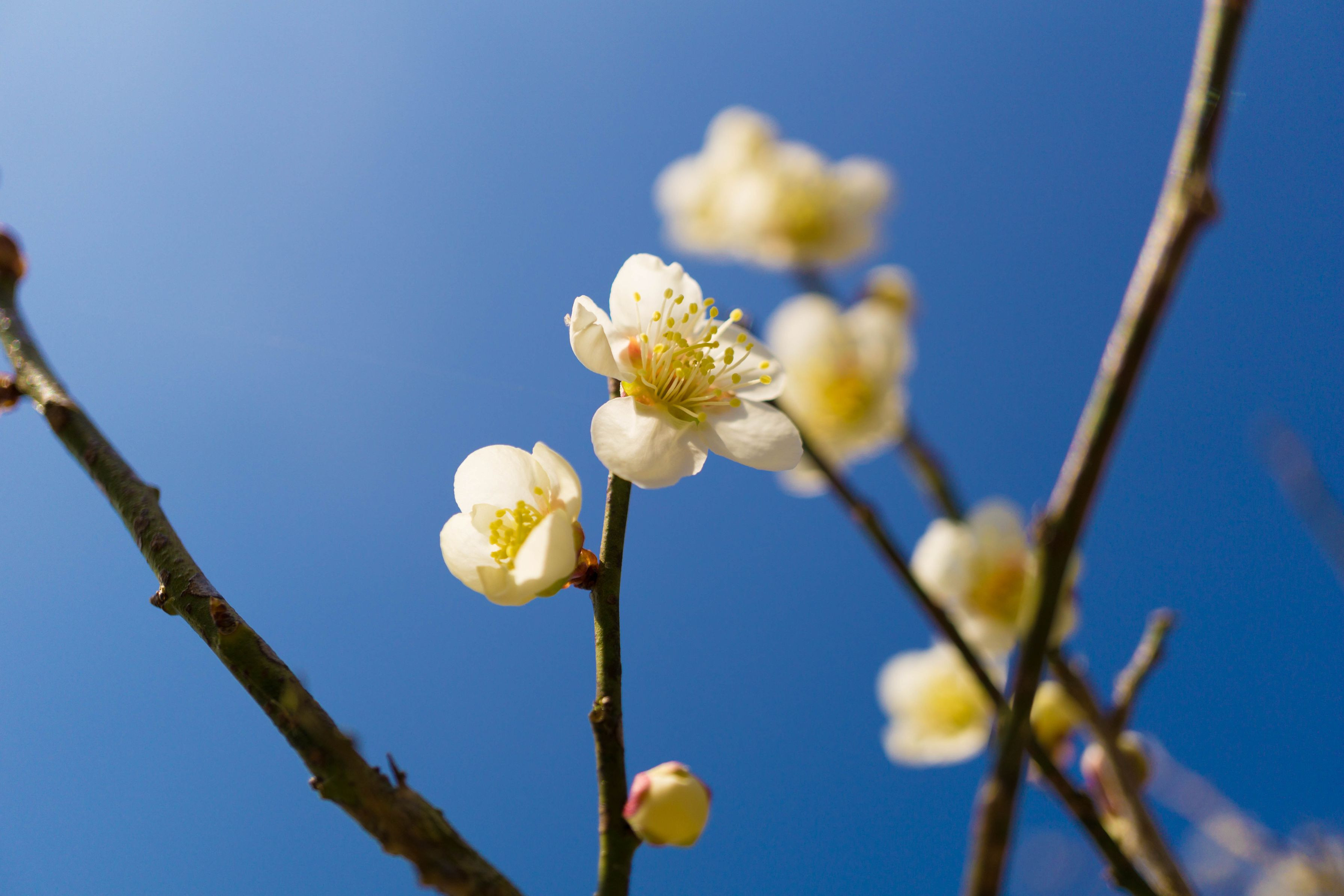 なんとなく撮ったら結構いい感じに撮れた一枚。 空の青と梅の白のコントラストがお気に入り!
