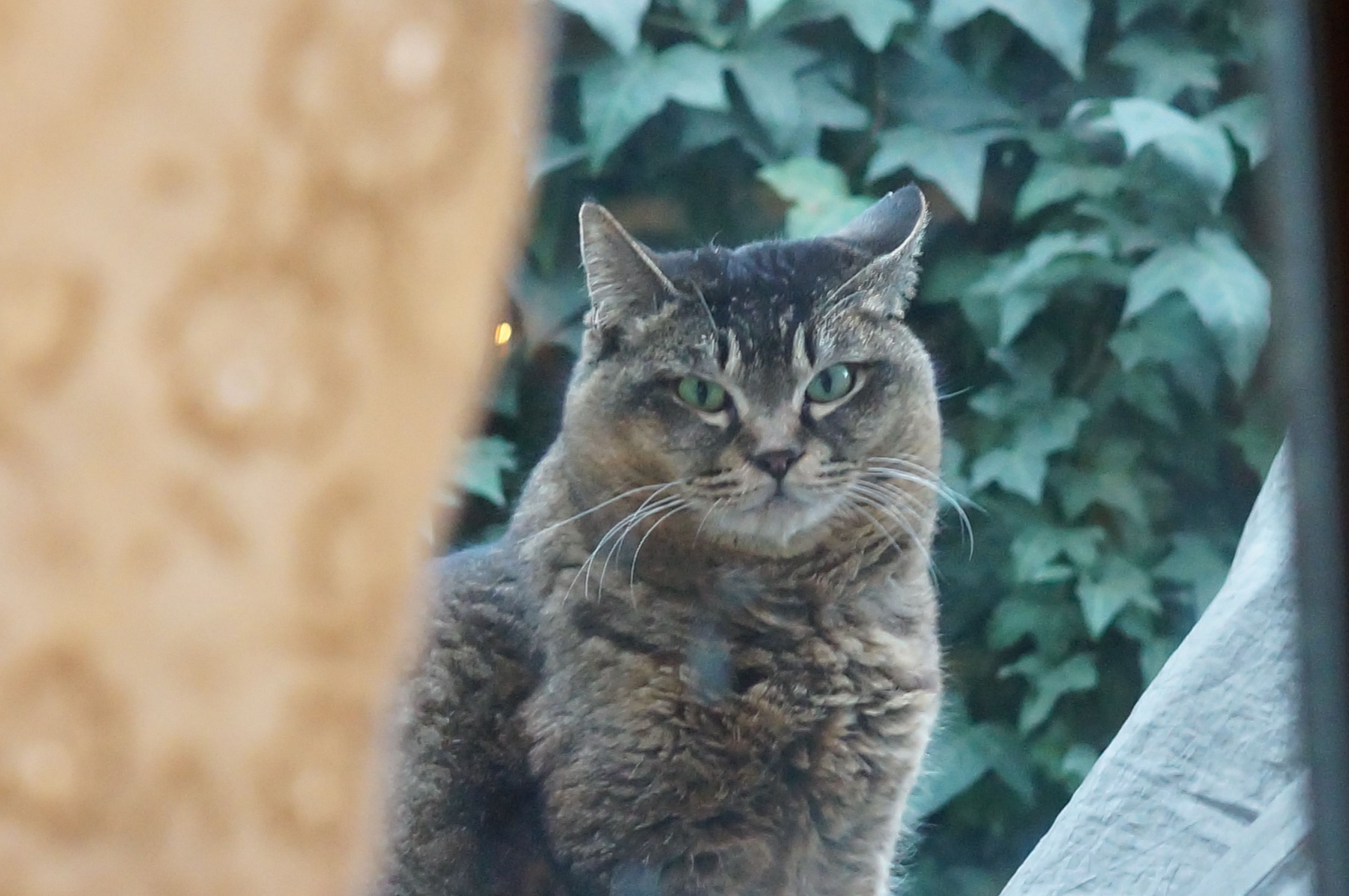 喫茶店のカーテンの向こうで、見つめてくれた猫。