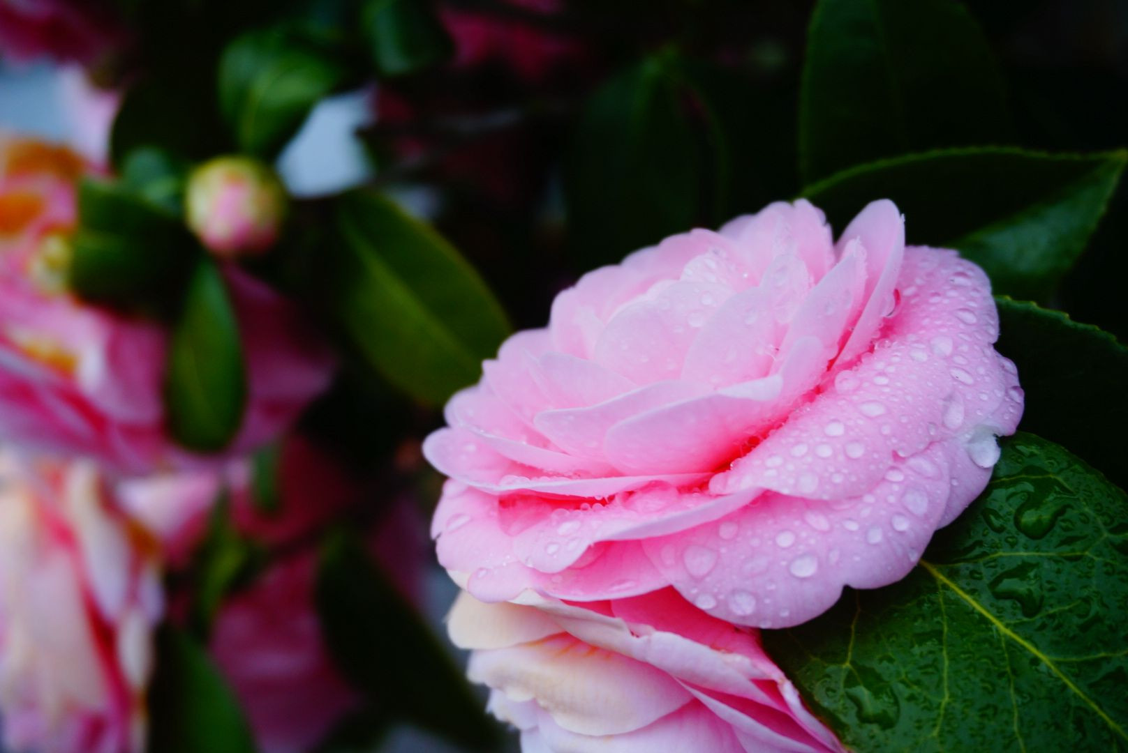 近所の道端に咲いてた乙女椿 ピンク色が鮮やかですね🎵