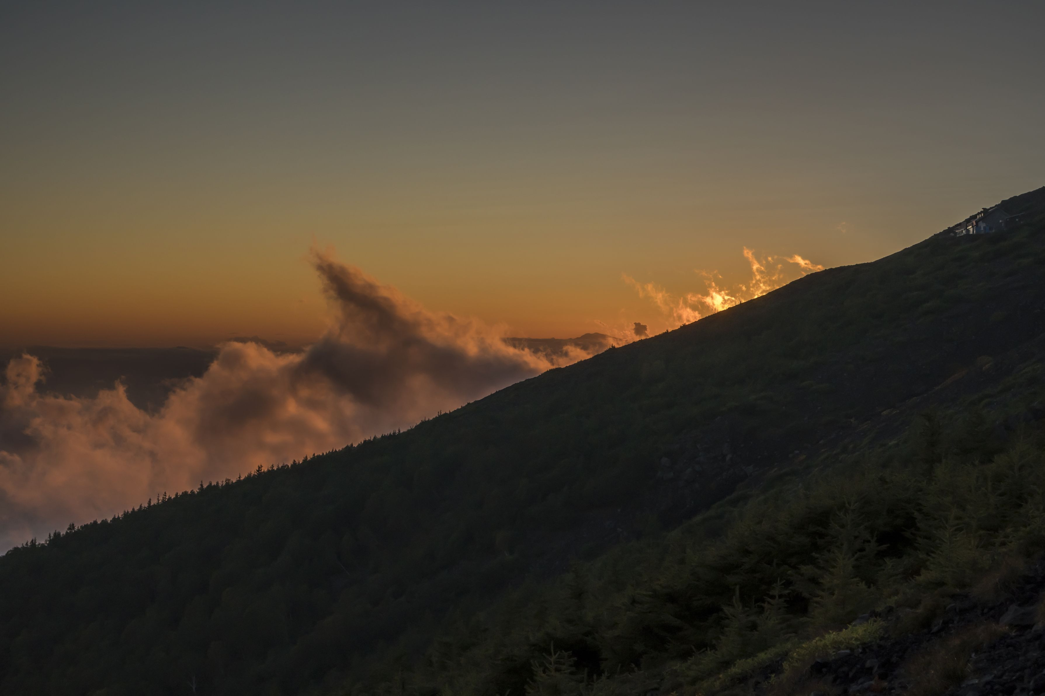 宝永山側から向こう側に沈んだ太陽の光が幻想的でした。