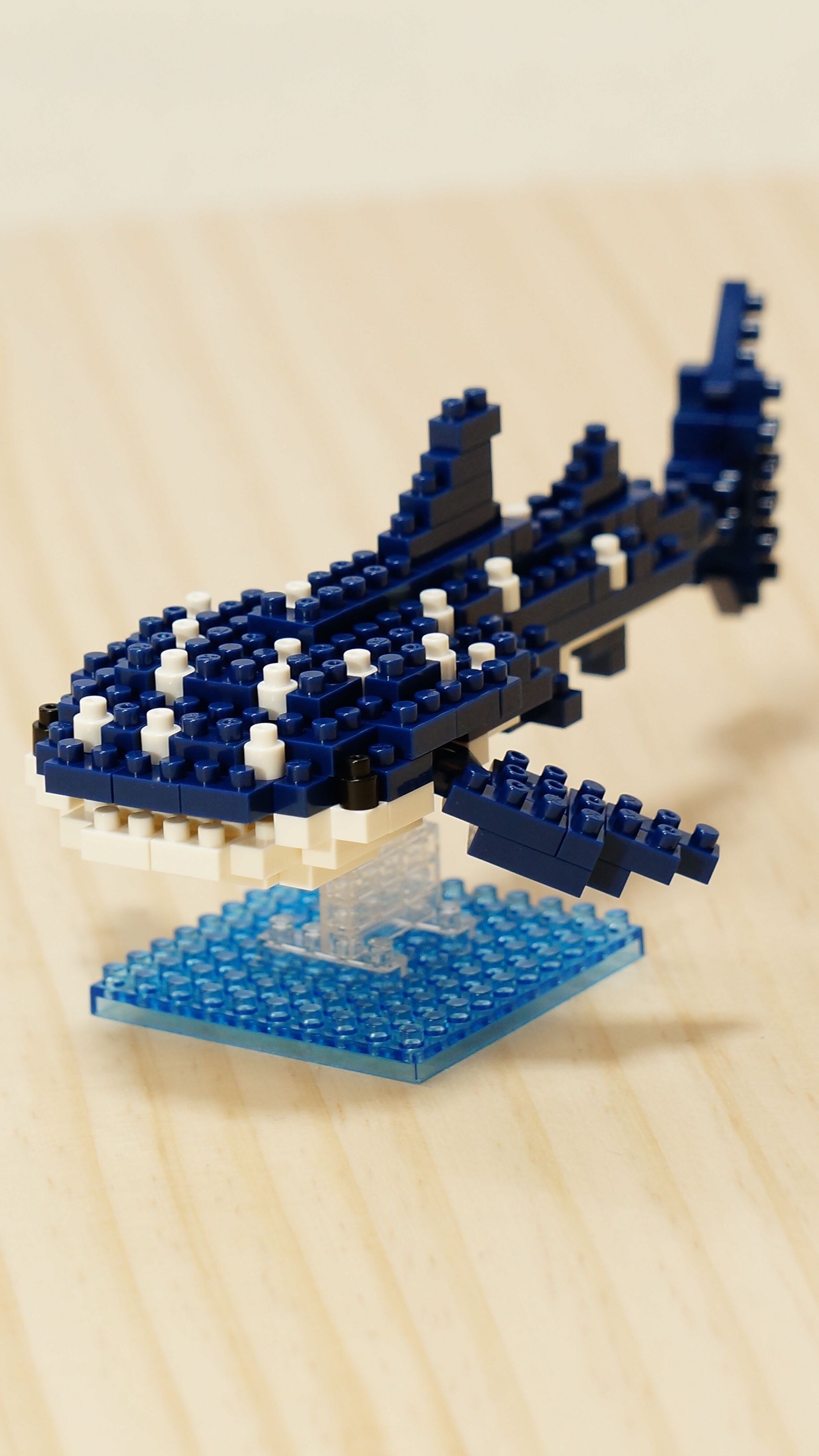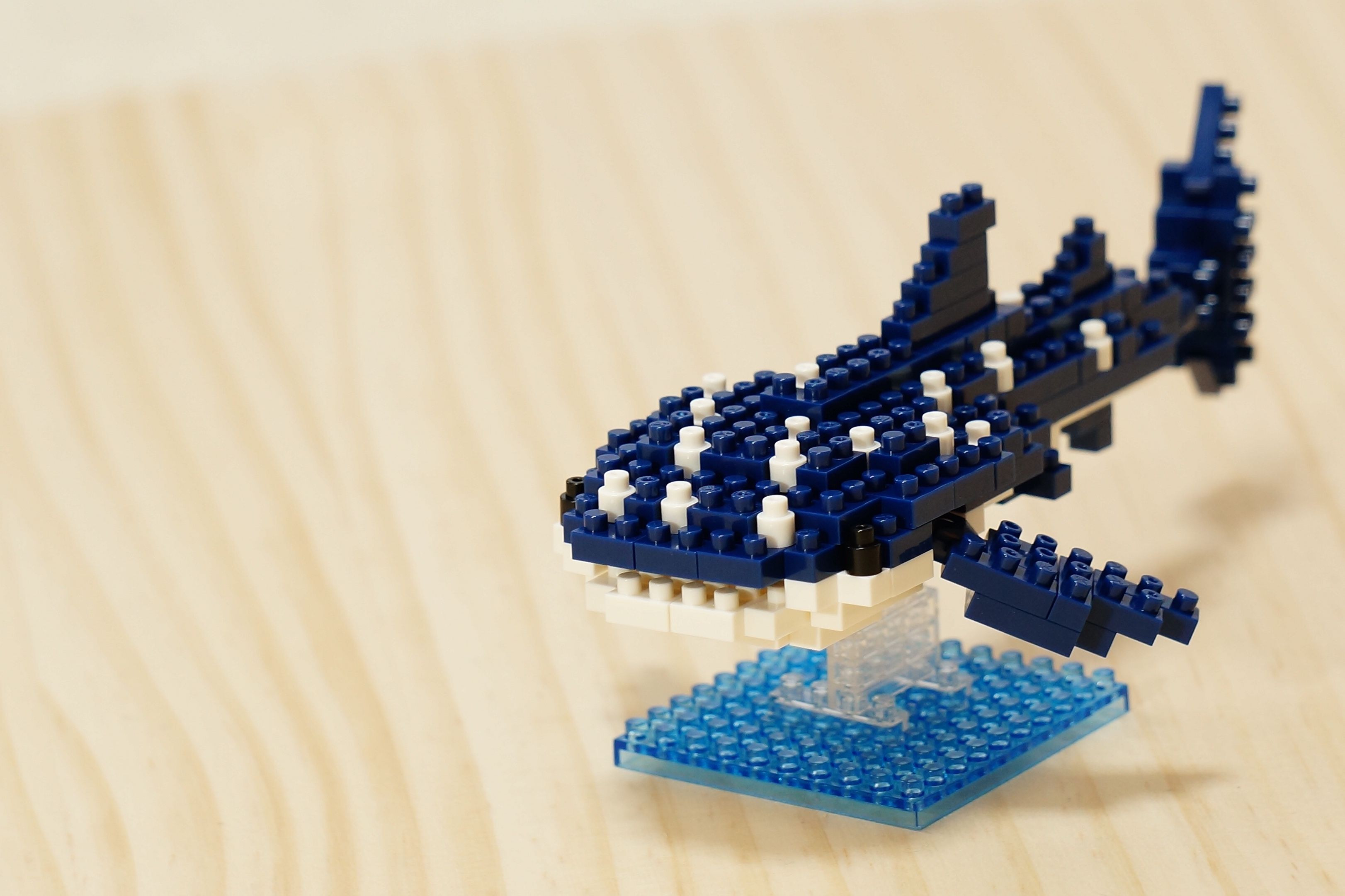 ナノブロックのジンベエザメです。 本物のジンベエザメはとても大きくて優雅ですが、ブロックにすると可愛くなりますね。