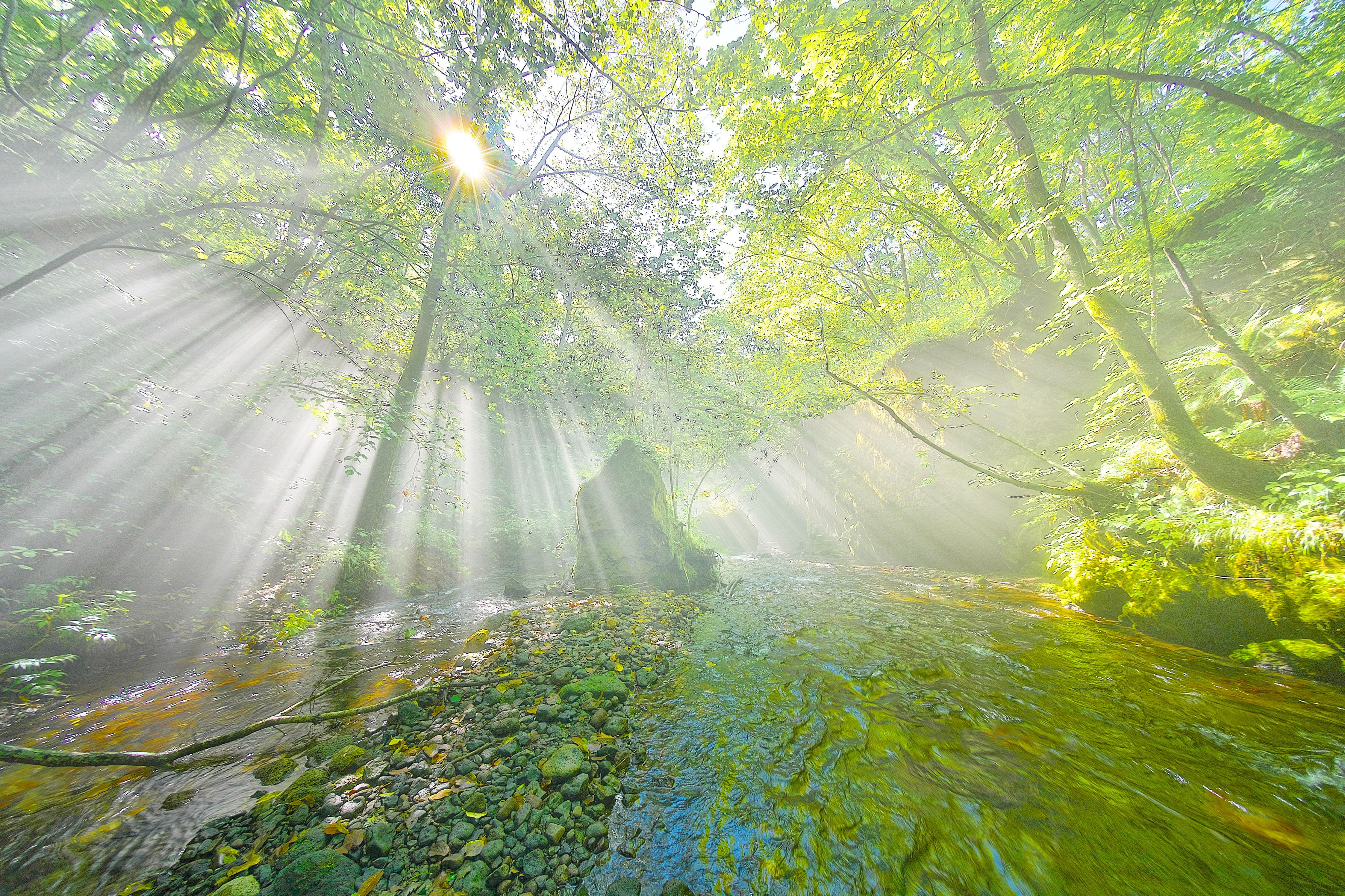 α9+Voigtlander HELIAR-HYPER WIDE 10mm F5.6 初ガローの時の一枚。 川まで降りた途端、光芒が発生したので三脚やハーフNDをセットしている暇もなく、カメラをバッグから取り出し、手持ちで撮りました。ほんの3分ほどで光芒は消えてしまったので、三脚をセットして、NDフィルターをセットしてなんてやってたら完全に撮り逃していました。