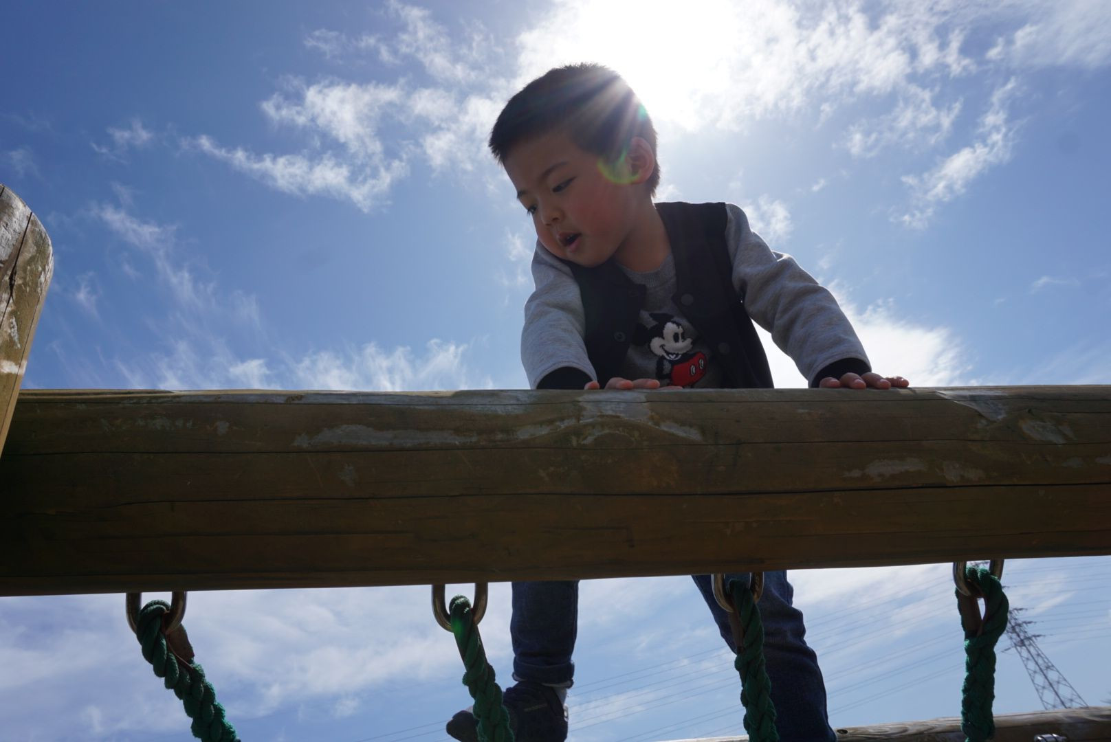 春空の下、アスレチックに夢中。