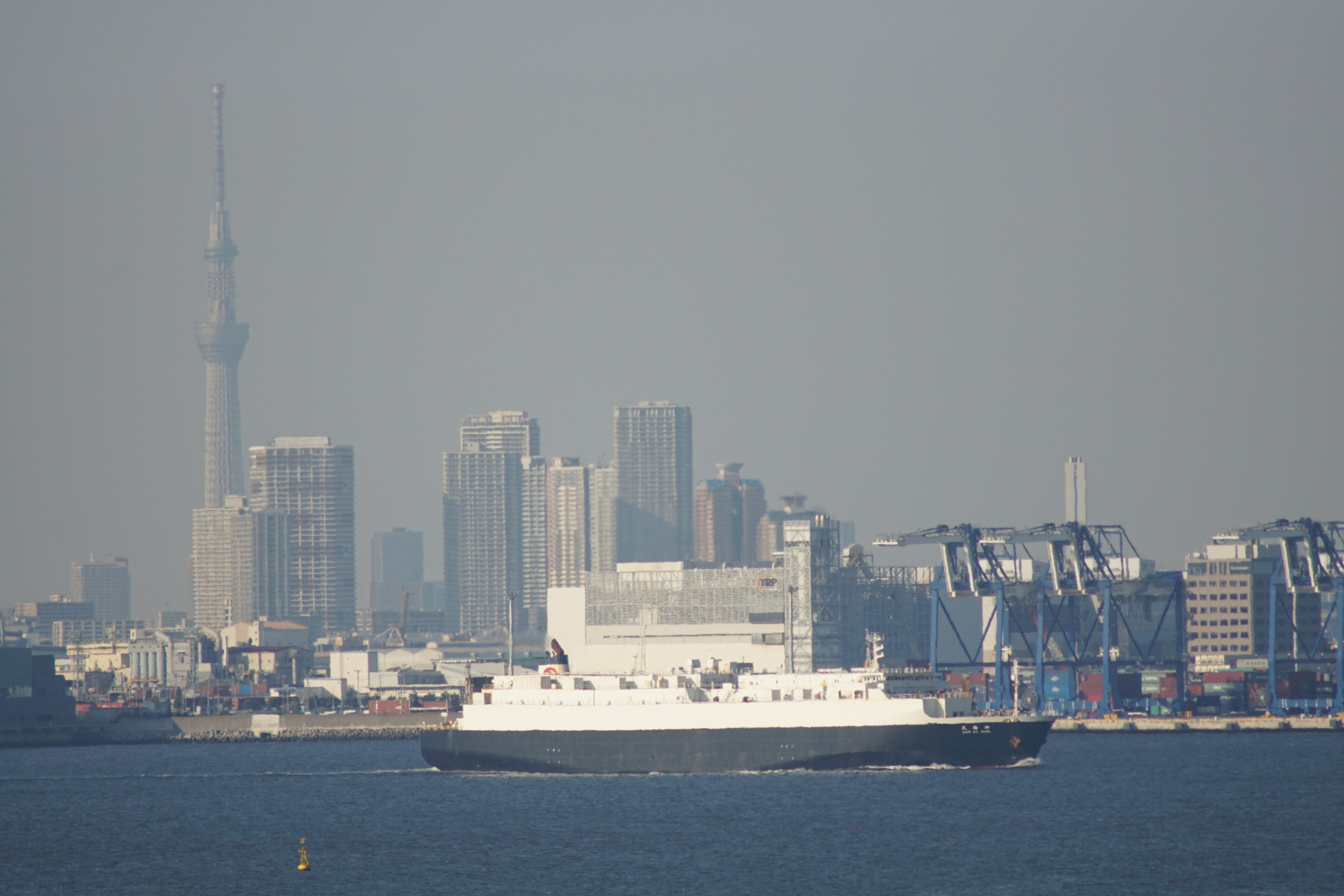 貨物船は東京港を行く