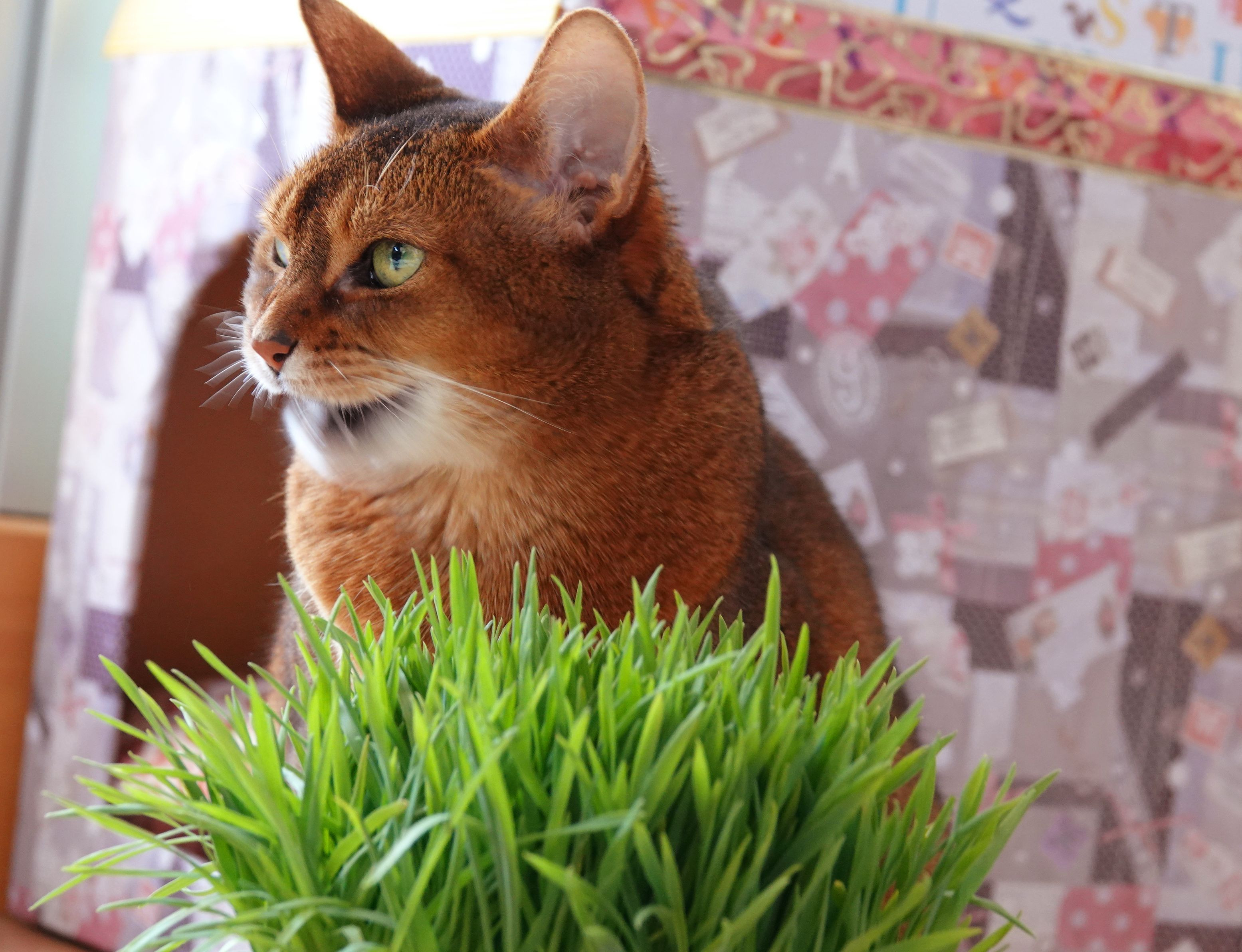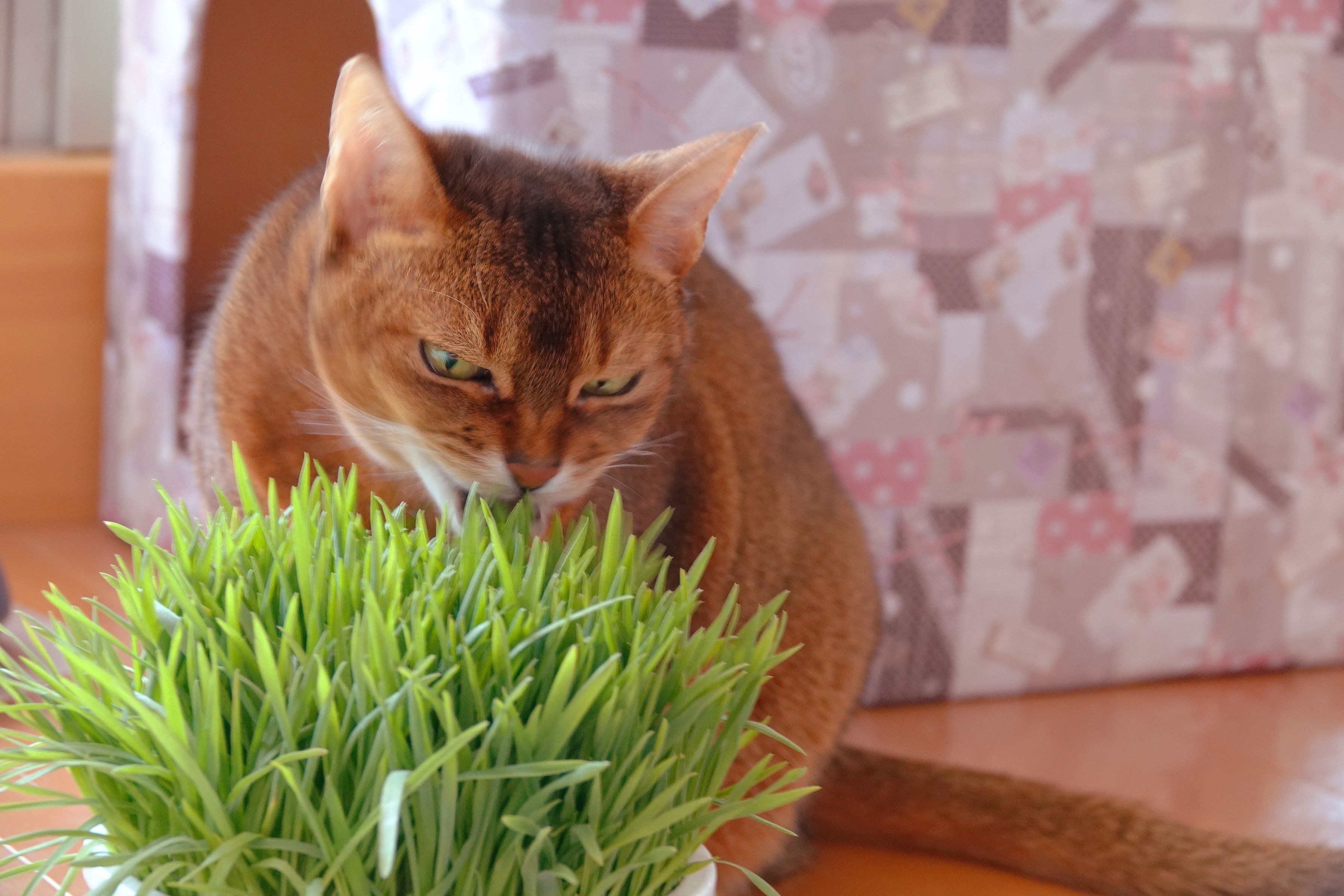 猫草に夢中のルビーです