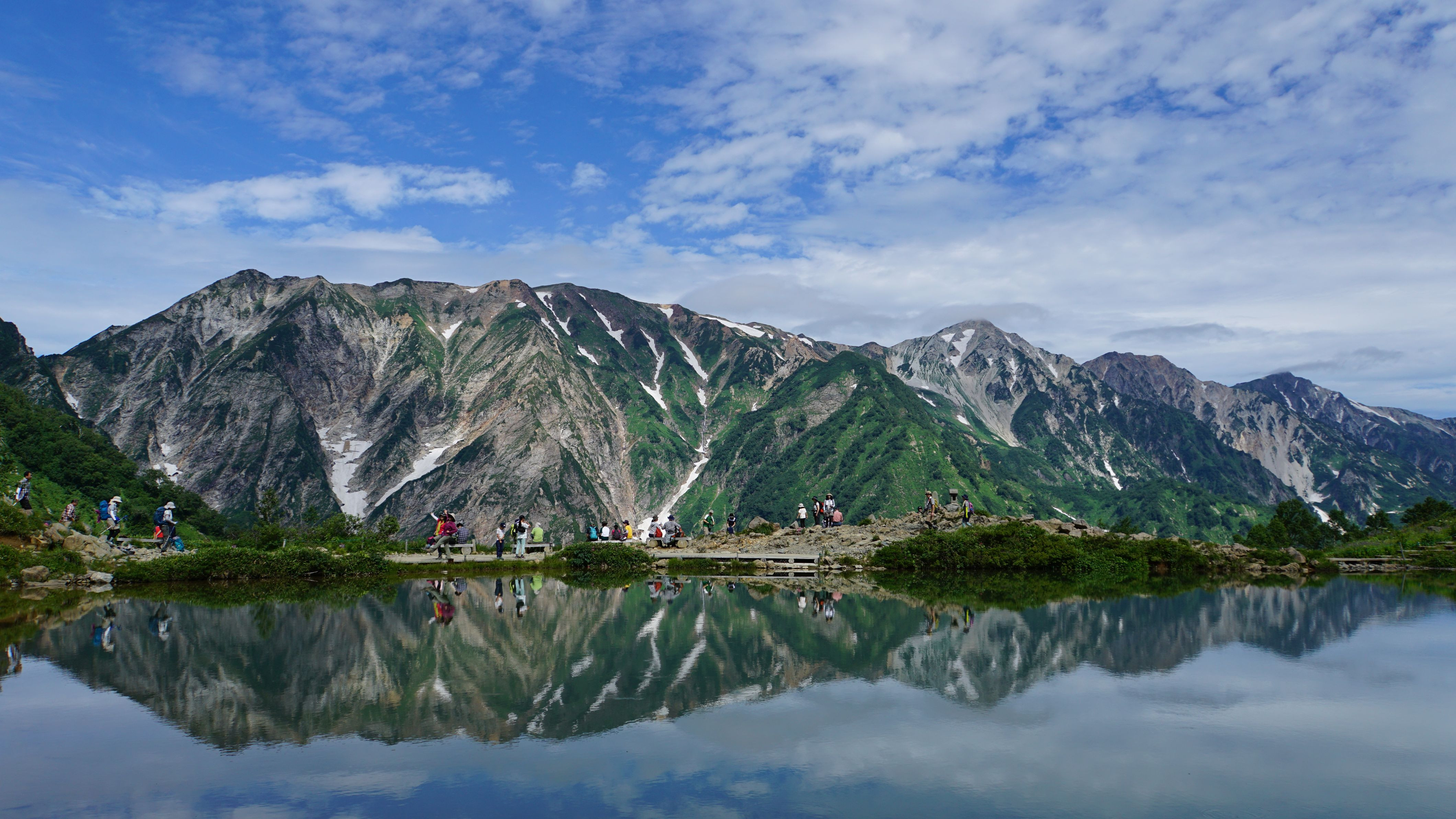 この日は朝方が晴天と風に恵まれたため、水面にも白馬連峰を映し出してくれました