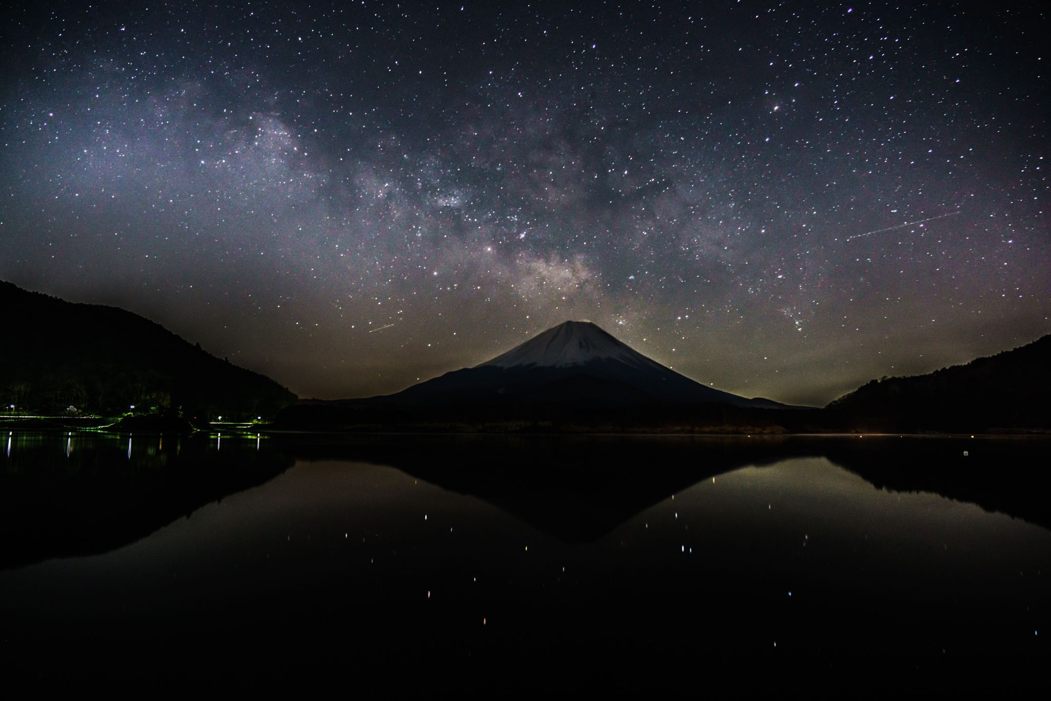 富士山の山頂から天の川が立ち上る煙のように見えました