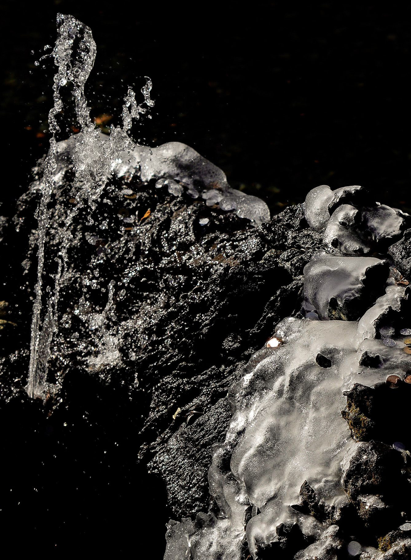 吹き上がる水流と、 表面が固まり始めた氷を、 一枚に収めてみました。