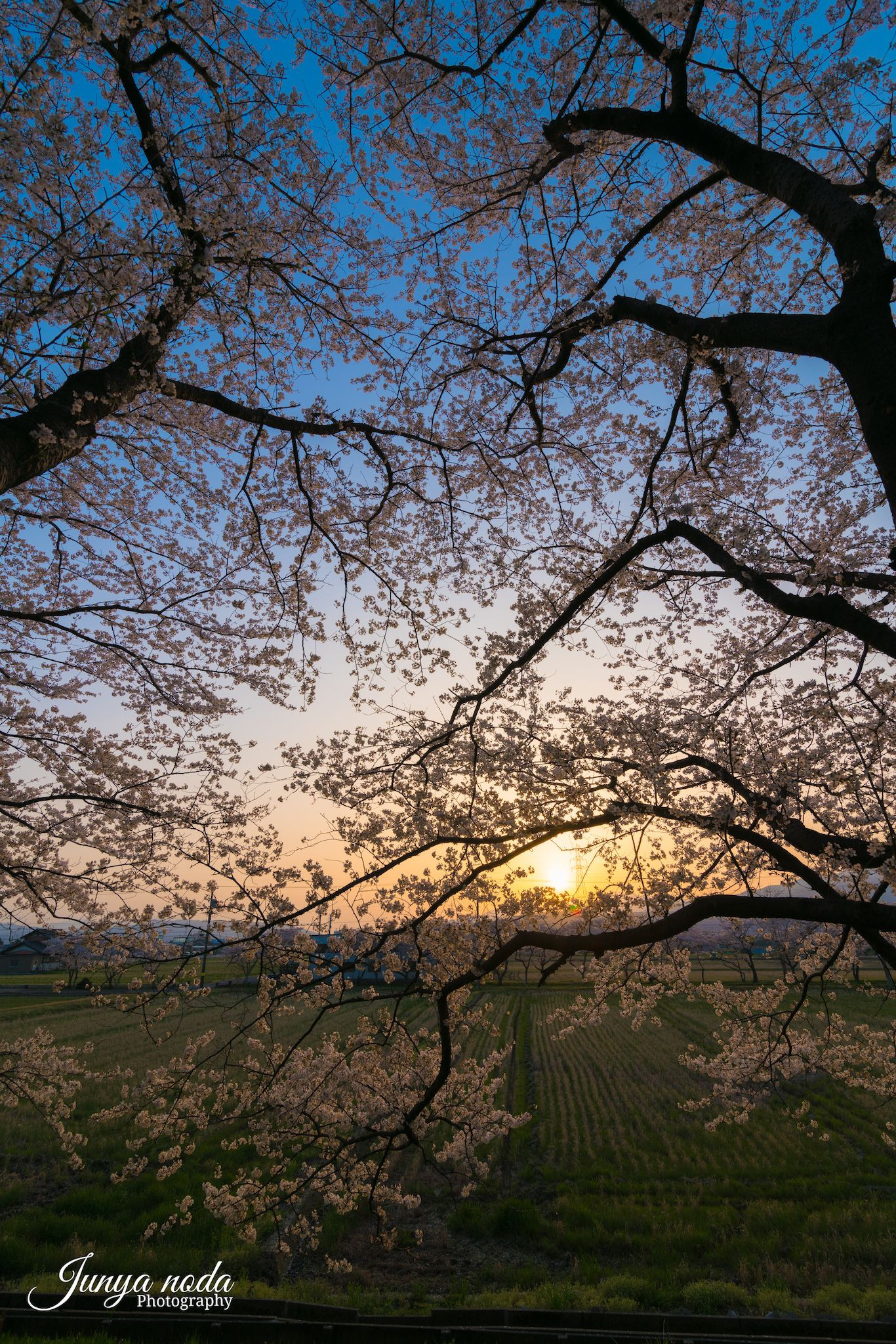 空のグラデーションと夕陽に染まる桜が綺麗でした。 MC11 / Tokita 16-28mm