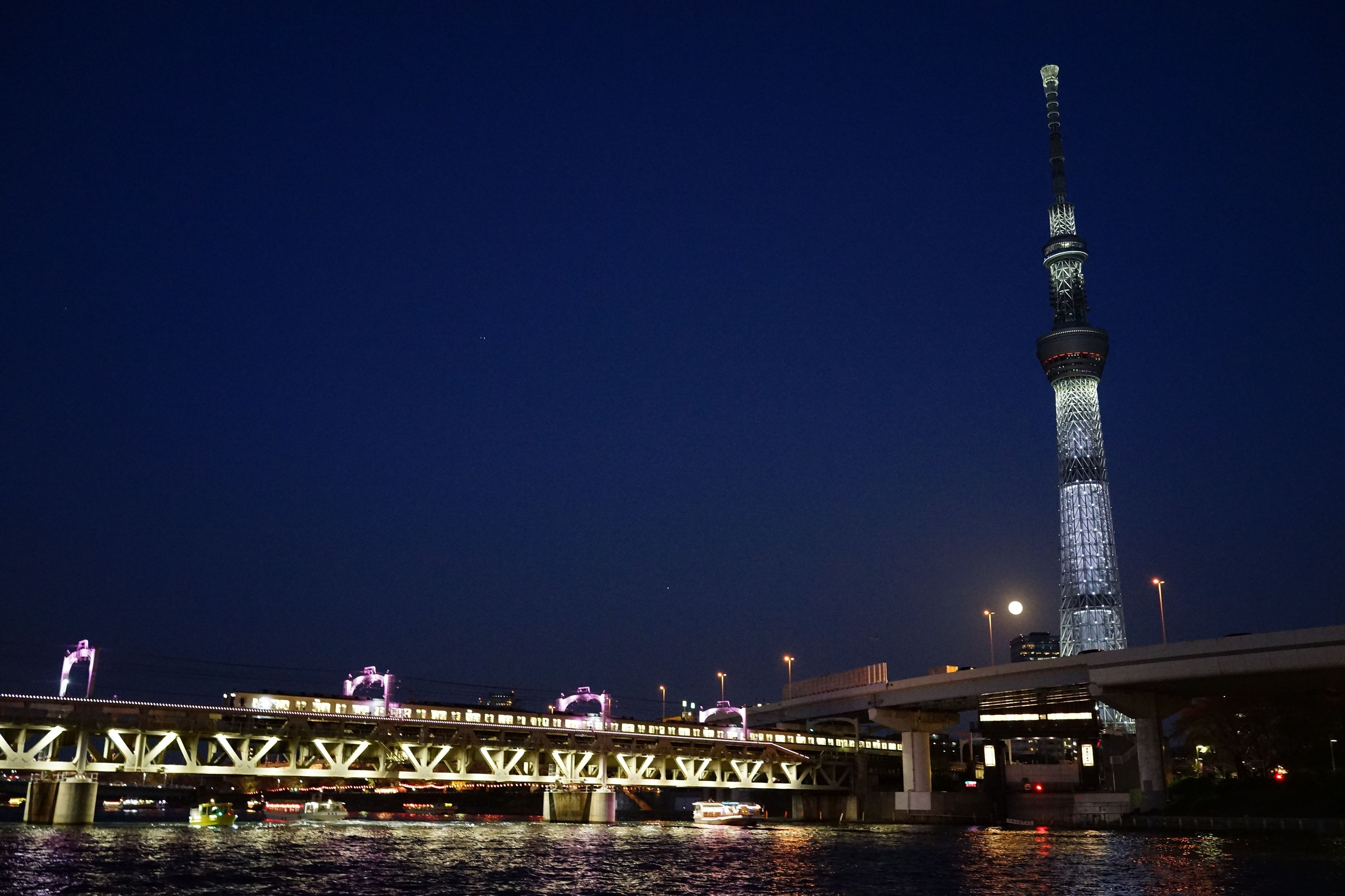 製品情報>My Sony>αcafe>東武鉄道橋梁とスカイツリーと満月(E235さん)