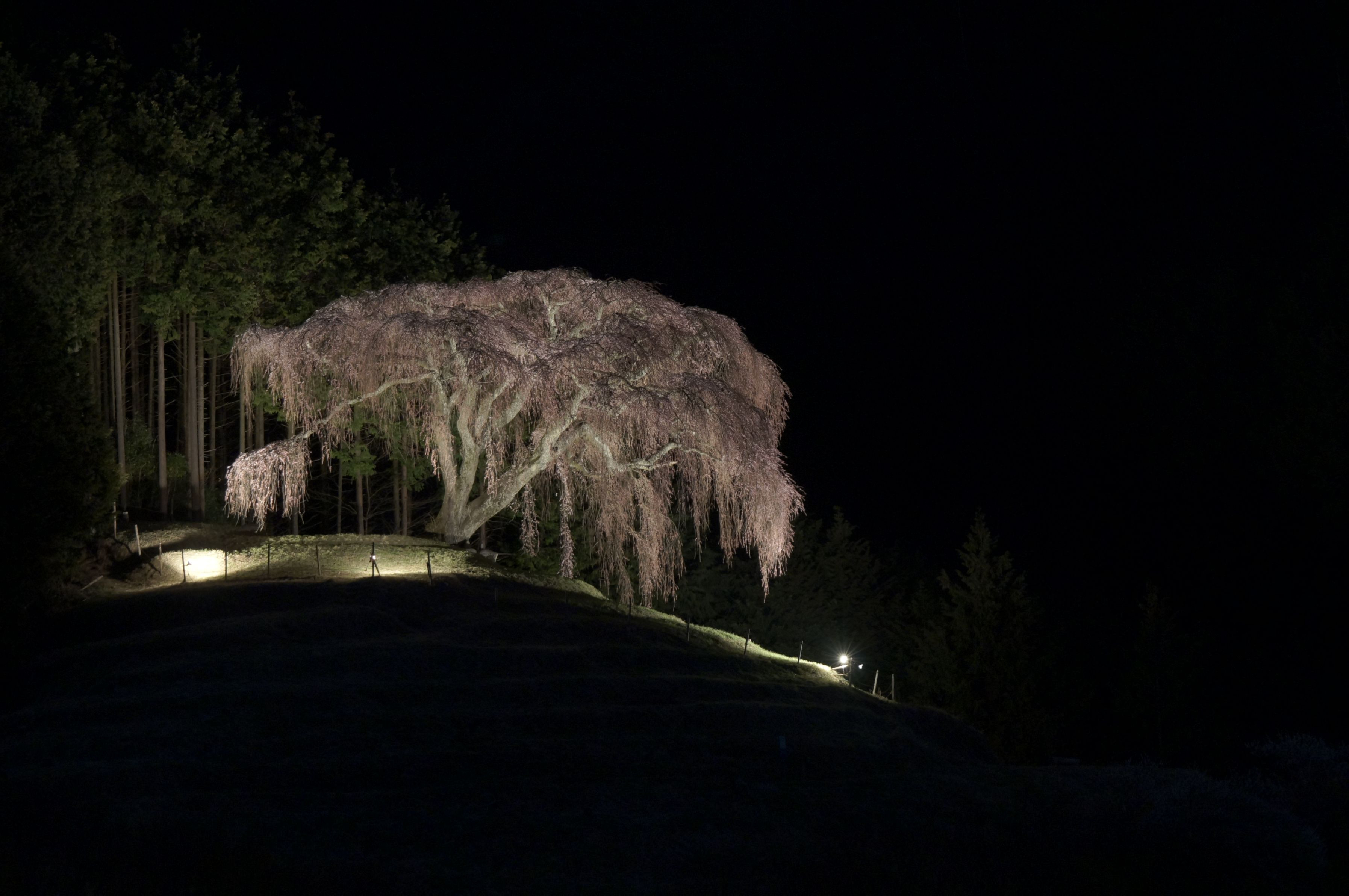 牧丘のランドマーク(乙ヶ妻のしだれ桜) 物心ついたときから変わらぬ景色。 変わったのはライトアップをはじめた事。