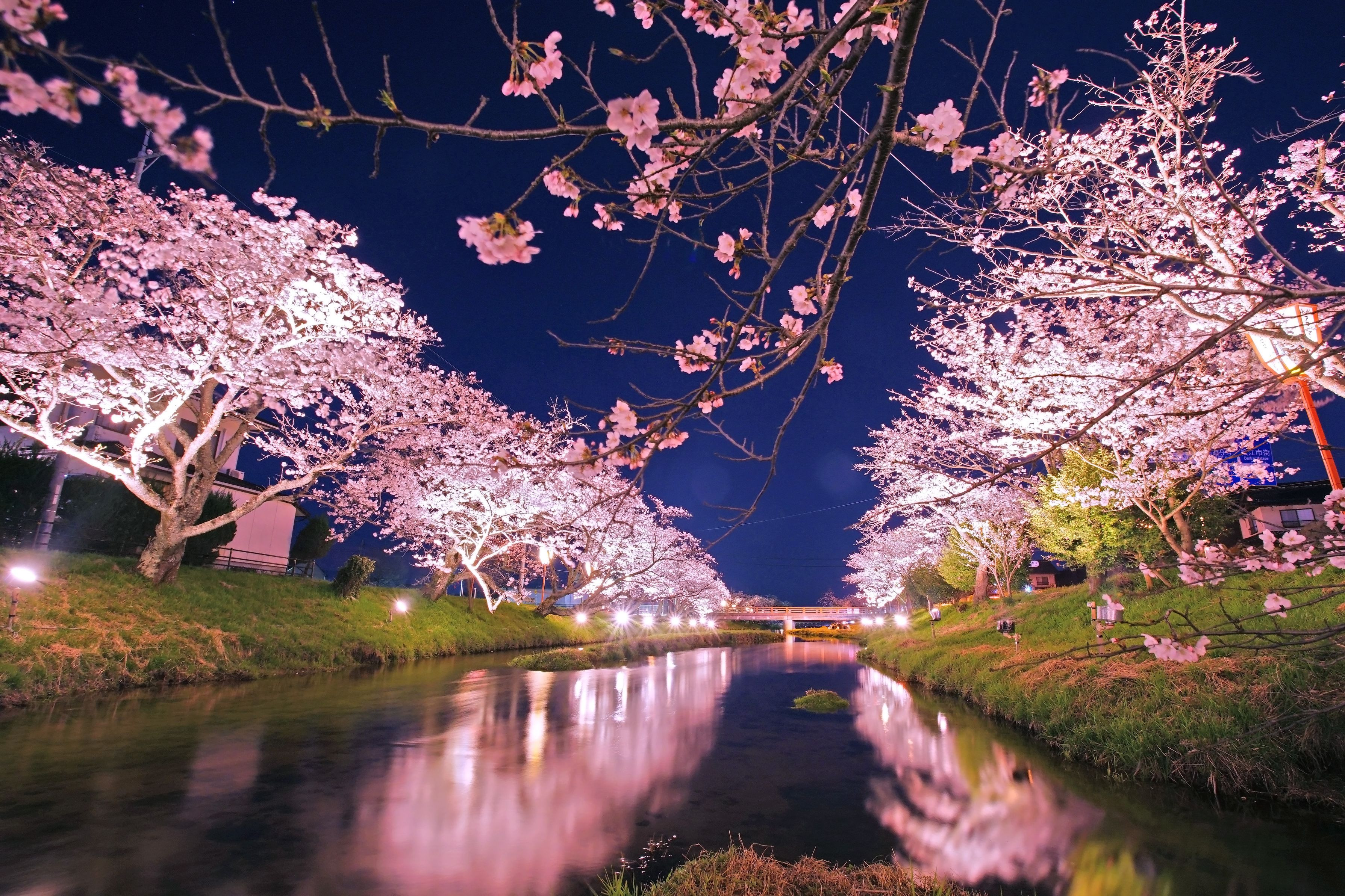 島根県松江市・玉造温泉街の中央を流れる玉湯川の夜桜ライトアップです。