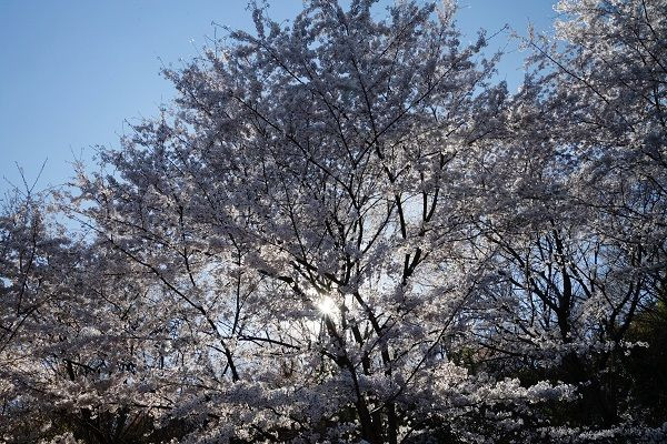 陽の光に桜が輝いていました。