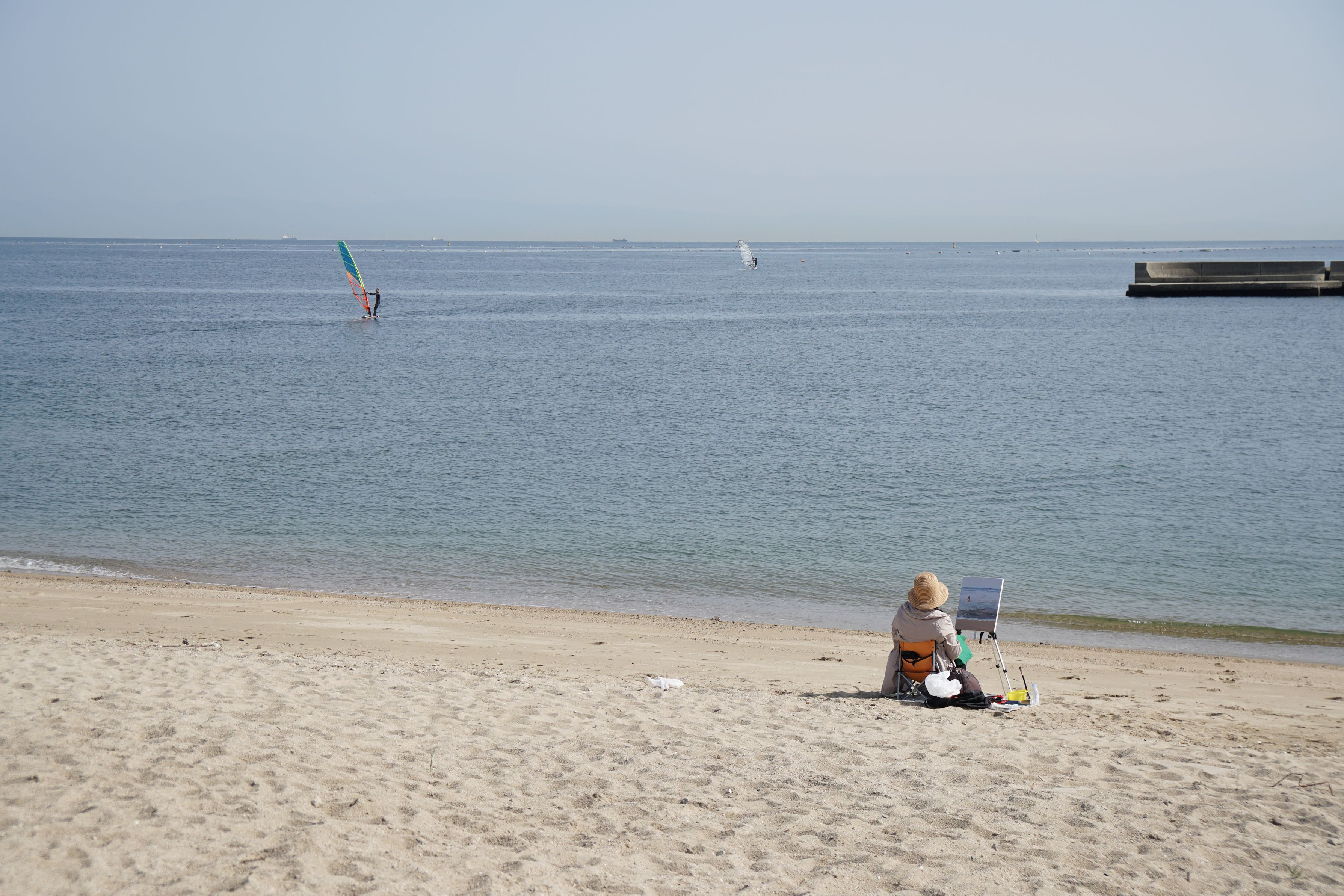 休日の海に趣味を楽しむ人を撮りました。
