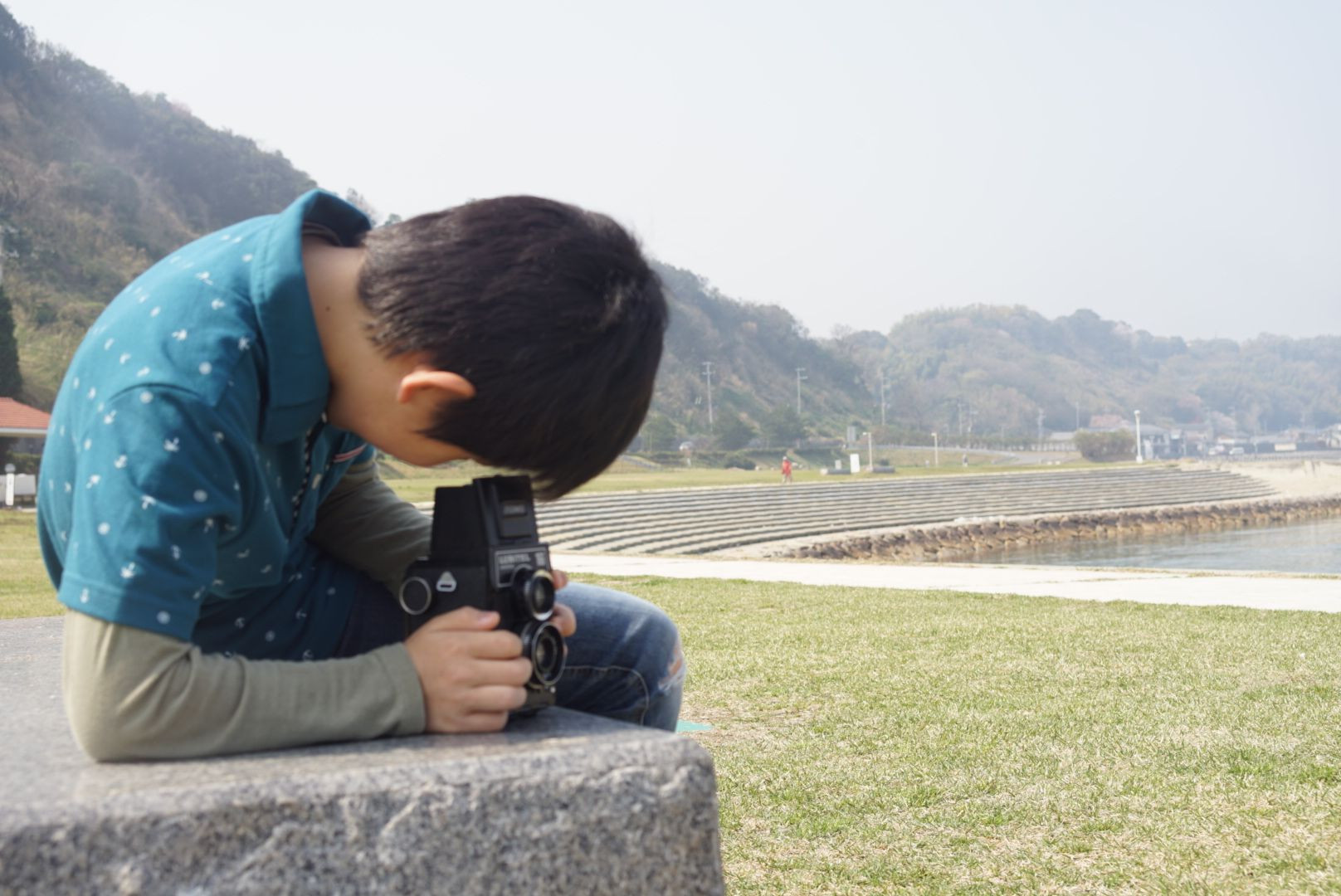 二眼レフトイカメラと息子 minolta rokkor 35mm f2.8