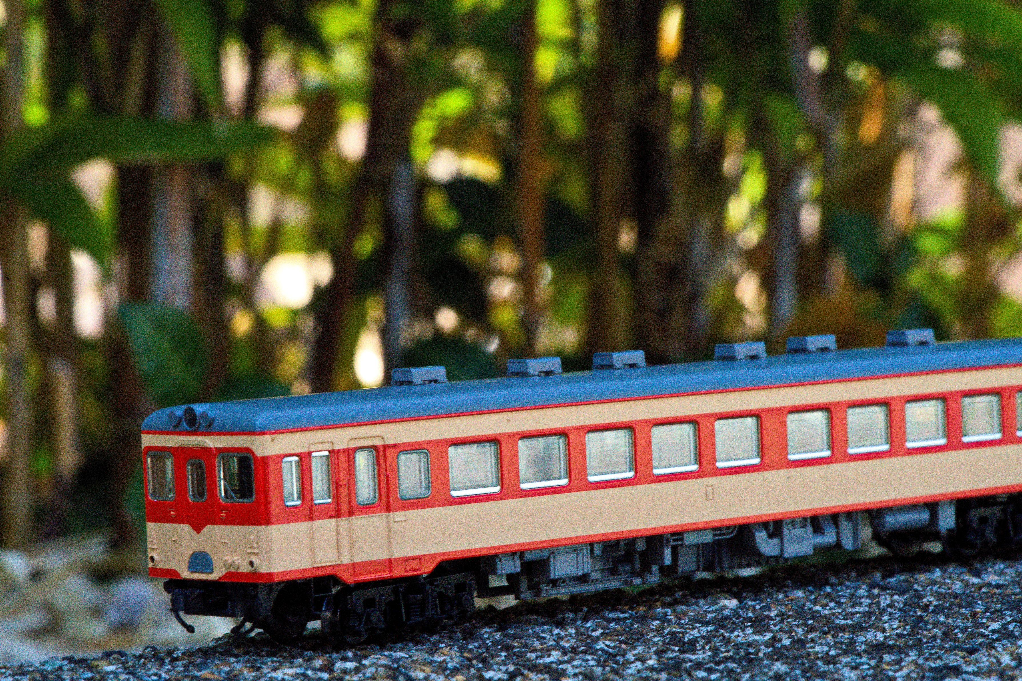 今は廃線となった妻線の記憶が蘇えり、衝動買いました。 その時の雰囲気が出るように、庭で撮ってみました。
