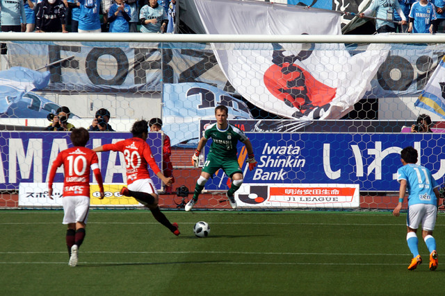 キッカーとキーパーの駆け引き。
