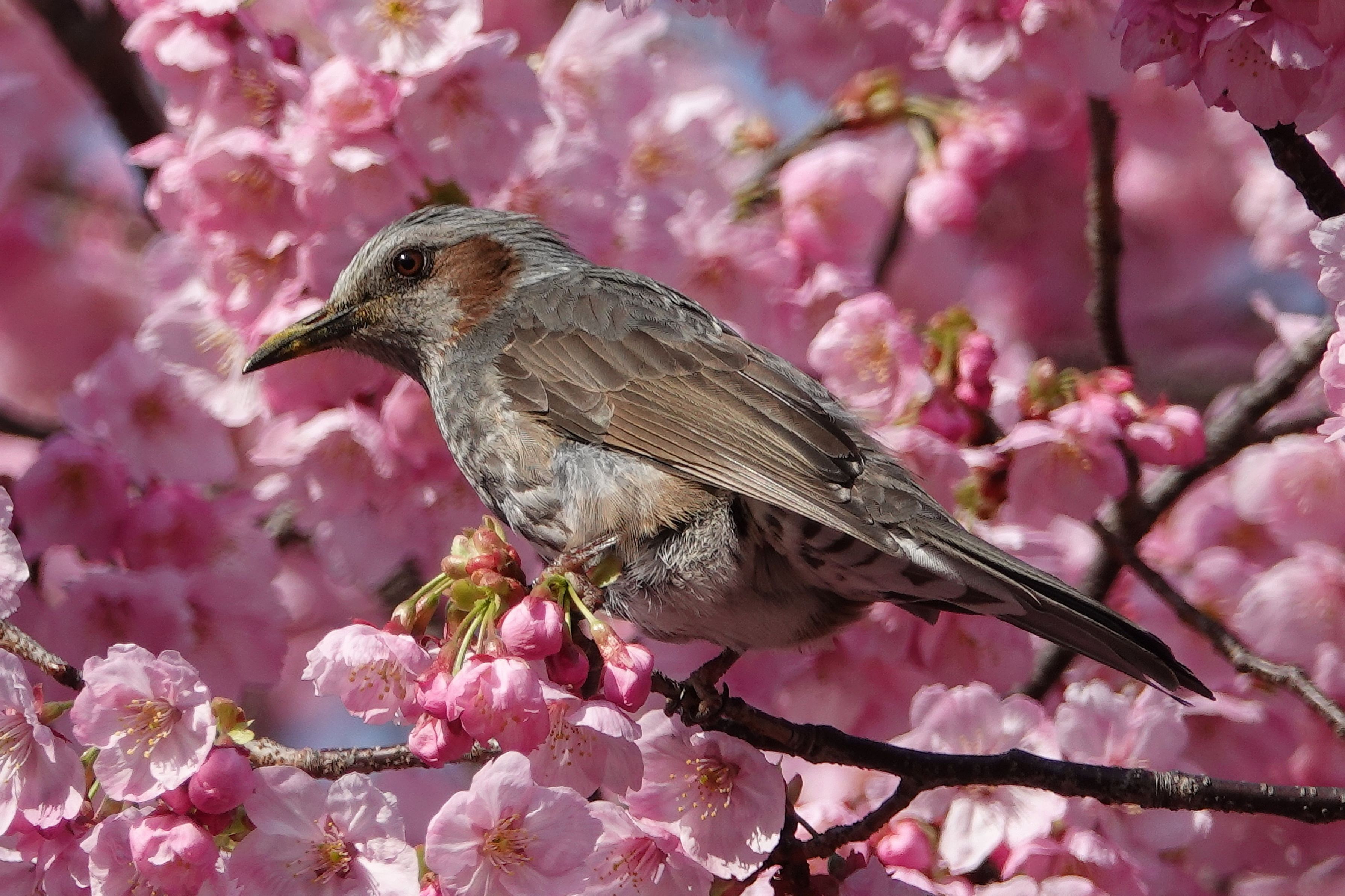 製品情報>My Sony>αcafe>ヒヨドリが桜をバックにポーズを決めてくれました。(hirokomachさん)