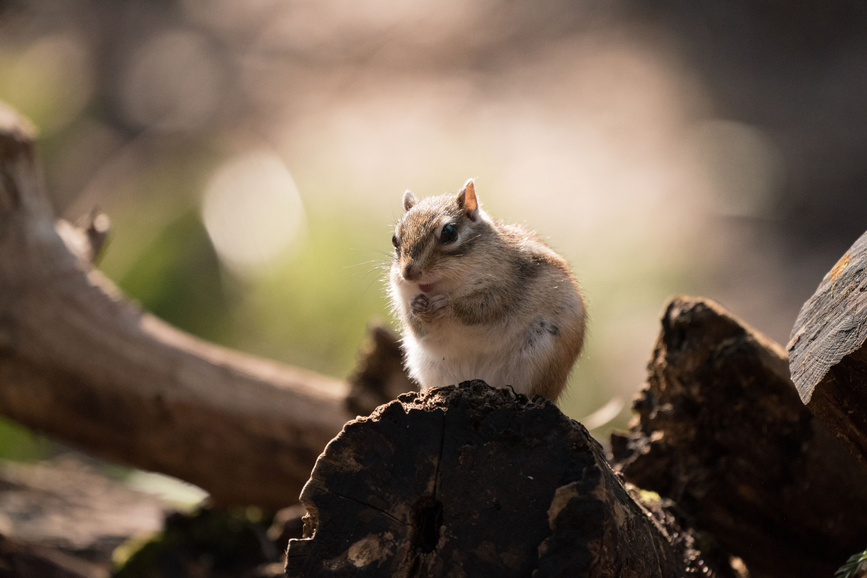 やっと暖かくなった北海道。 光の当たったシマリスくん。