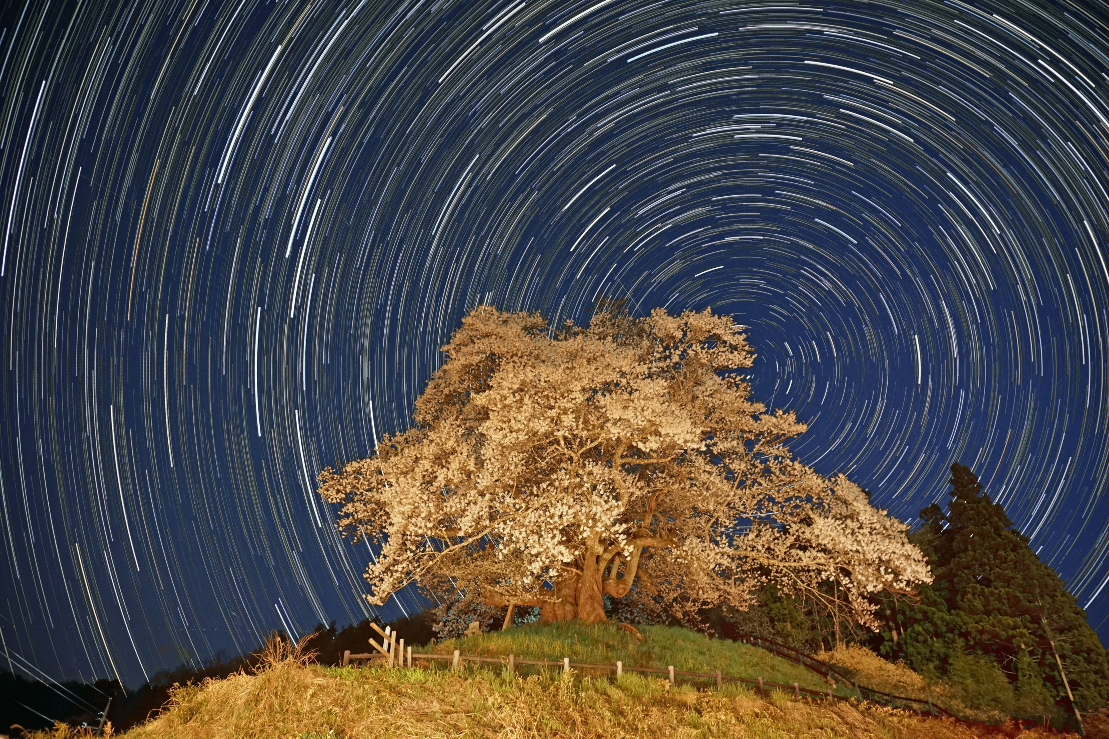 桜に光が当たっているのは、他の撮影者の方が周りの了解を得て懐中電灯で光を当てていたからです。