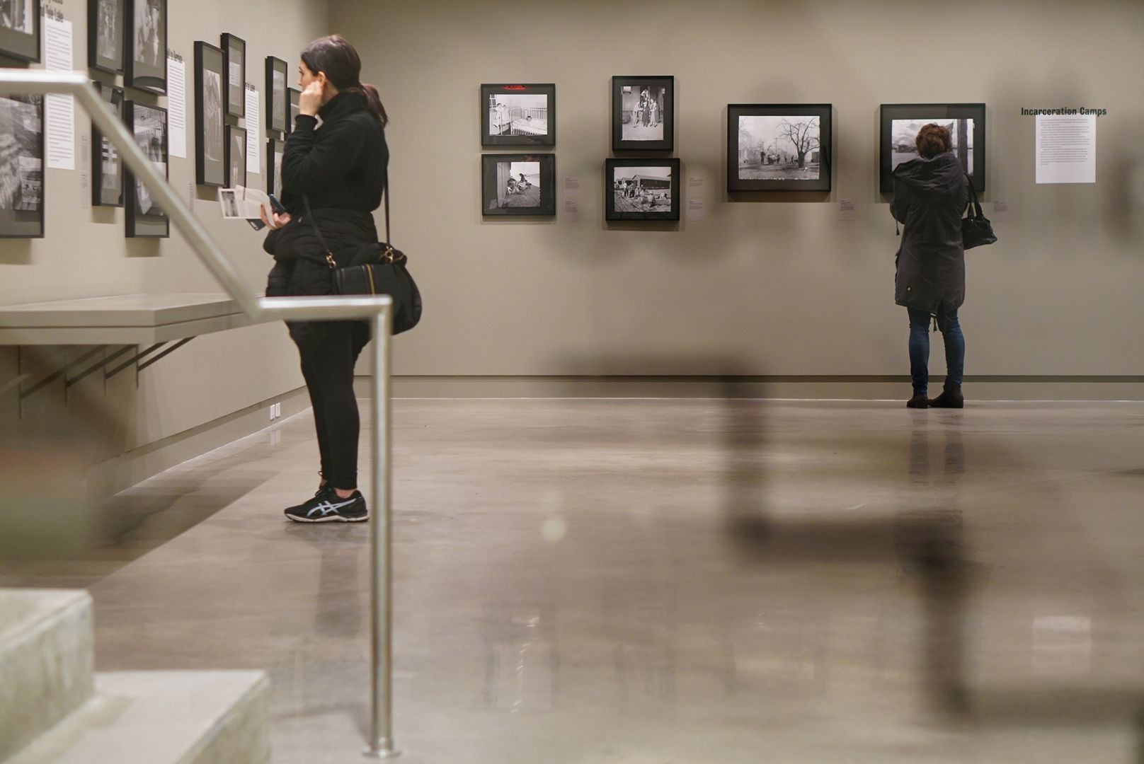 国際写真センターの外観と内部の展示です。 通りの様子をガラスに投影させました。