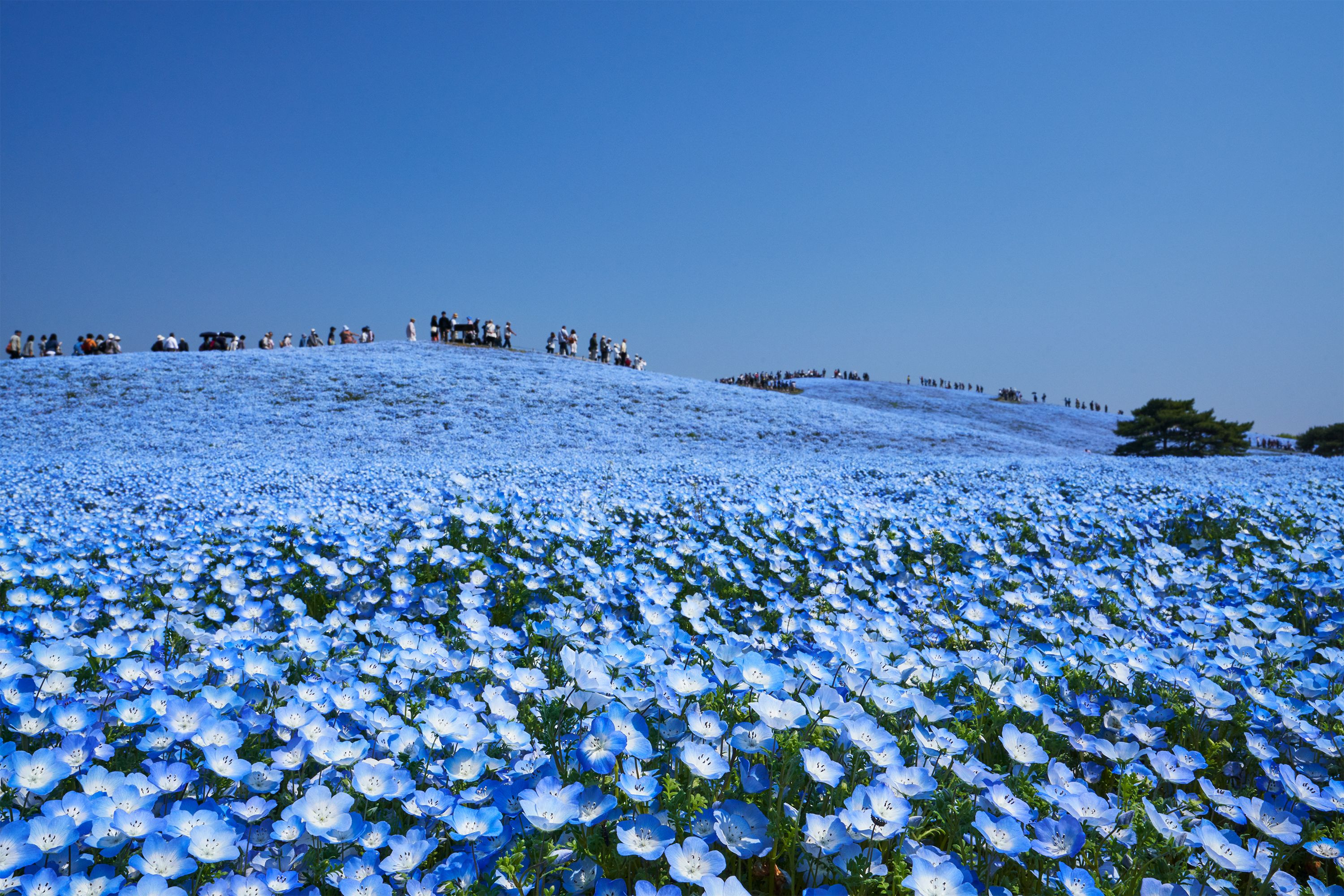 ひたち海浜公園のネモフィラの丘です。4/14は曇ってしまっておりましたので再挑戦。